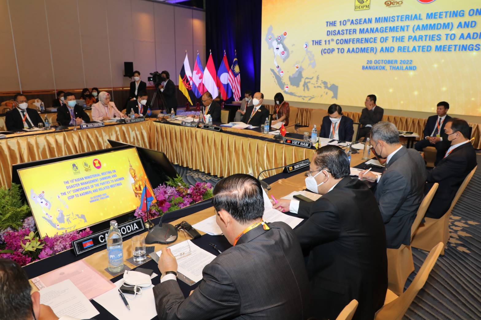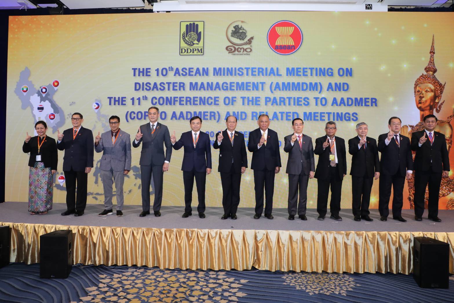 โดยมีรัฐมนตรีจาก 12 ประเทศ ได้แก่ บรูไนดาลุสซาลาม กัมพูชา อินโดนีเซีย ลาว มาเลเซีย เมียนมา ฟิลิปปินส์ สิงคโปร์ เวียดนาม จีน เกาหลี และญี่ปุ่น รวมถึงรองเลขาธิการอาเซียน และกรรมการบริหาร AHA Centre เข้าร่วมการประชุมฯ เพื่อรับทราบผลการดำเนินงานด้านการจัดการภัยพิบัติของอาเซียน และการดำเนินงานด้านการให้ความช่วยเหลือด้านมนุษยธรรมแก่เมียนมา พร้อมทั้งรับรองเอกสารแผนการดำเนินงานร่วมกัน รวมถึงเอกสารกำหนดบทบาทในความร่วมมือด้านการจัดการภัยพิบัติสำหรับการประชุมร่วมกับคู่เจรจาของอาเซียน ได้แก่ สาธารณรัฐเกาหลี สาธารณรัฐประชาชนจีน และประเทศญี่ปุ่น ที่จัดขึ้นในช่วงบ่ายวันเดียวกัน เพื่อหารือความเป็นไปได้และขยายกรอบความร่วมมือ รวมทั้งรับรองเอกสารสำคัญในการดำเนินความร่วมมือ เพื่อให้ประชาคมอาเซียนของเรามีความพร้อมและสามารถรับมือกับภัยพิบัติได้อย่างเข้มแข็งและยั่งยืน โอกาสนี้ นายบุญธรรม เลิศสุขีเกษม อธิบดีกรมป้องกันและบรรเทาสาธารณภัย (ปภ.) เข้าร่วมประชุมและนำเสนอผลงานของอาเซียนด้านการจัดการภัยพิบัติในวาระที่ประเทศไทยเป็นประธานคณะกรรมการอาเซียนด้านการจัดการภัยพิบัติ (ASEAN Committee on Disaster Management: ACDM)