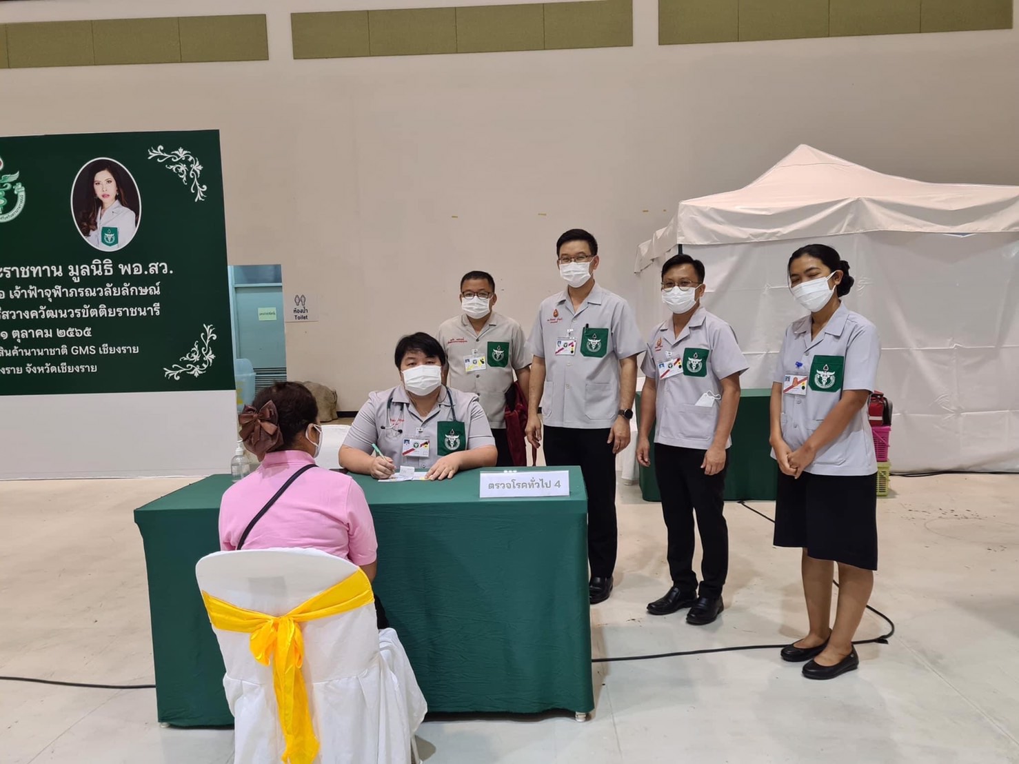 วันที่ 21 ตุลาคม 2565 เวลา 07.00 น. นางบุษบา บุญญลักษม์ นายกเหล่ากาชาดจังหวัดเชียงราย มอบหมายให้นางตะวันฉาย เฟื่องวัฒนาพานิช กรรมการเหล่ากาชาดจังหวัดเชียงราย และนางศิริพร เหรียญทอง กรรมการเหล่ากาชาดจังหวดัเชียงราย ร่วมปฏิบัติงานและให้บริการประชาชนที่เข้ารับบริการในหน่วยแพทย์พระราชทาน พอ.สว.กรณีพิเศษ และหน่วยทันตกรรมพระราชทาน ณ ศูนย์ประชุมและแสดงสินค้านานาชาติ GMS จังหวัดเชียงราย