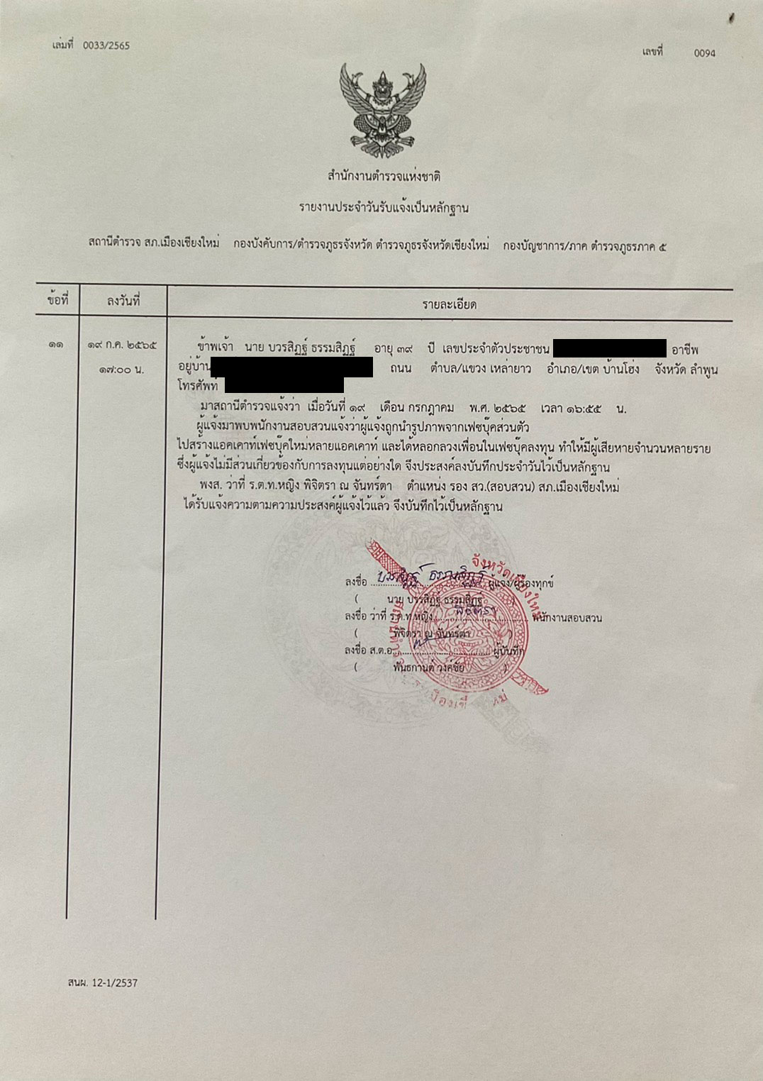 โดยนายบวรสิฏฐ์ ให้เปิดเผยว่า คนที่ถูกเฟซปลอมหลอก เป็นการชวนหลอกลงทุน หลอกเสียเงิน คุยจนสนิท บางรายศูนย์เกือบล้าน เจ้าตัวโร่ลงบันทึกประจำวัน สภ.เมืองเชียงใหม่ไว้แล้ว พร้อมโพสต์เตือนภัยให้ระวัง ซึ่งมีผู้เสียหายส่งข้อความ แจ้งมาเจ้าตัวจำนวนมาก