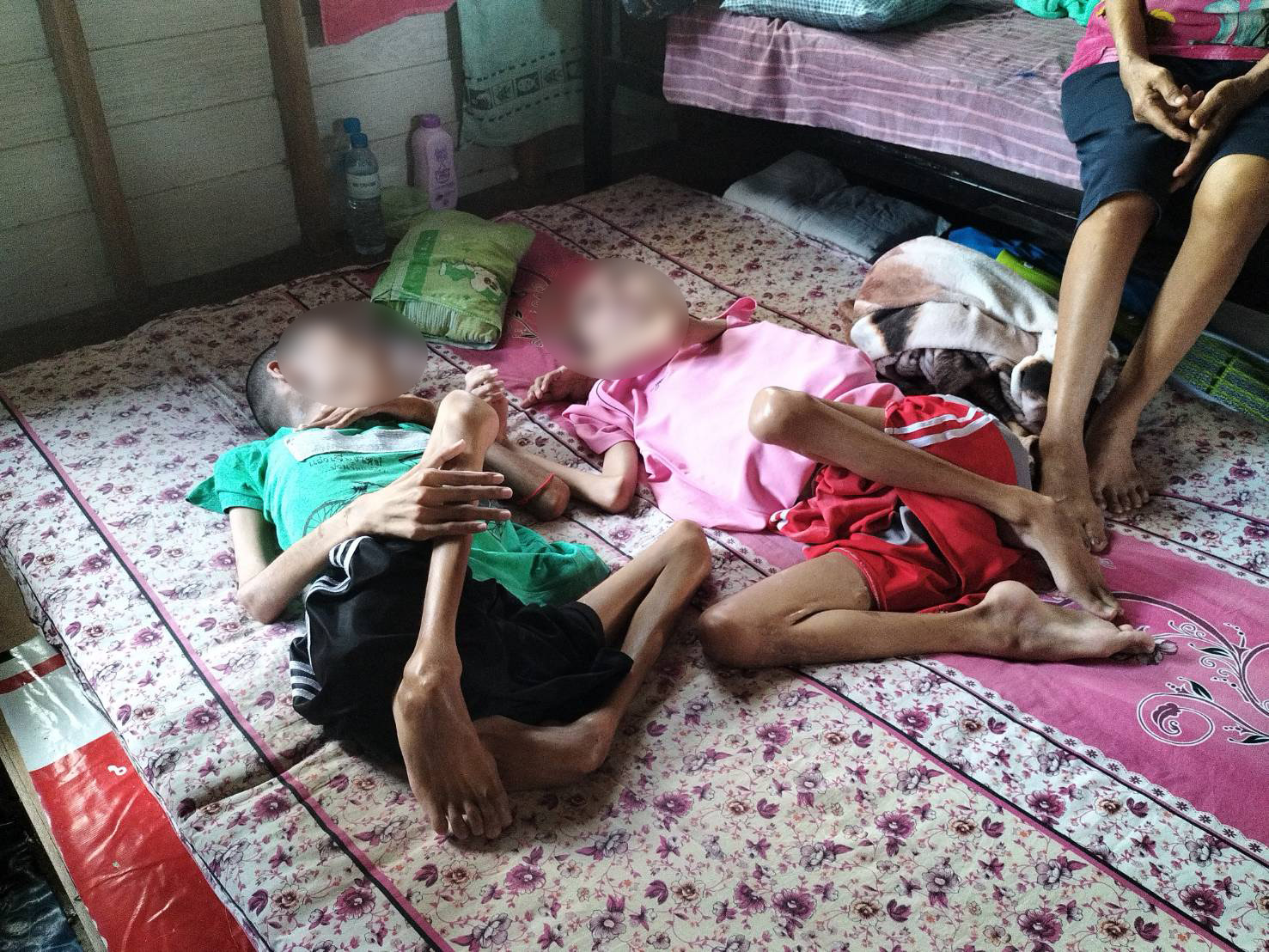 วันที่ 22 ต.ค. 65 ผู้สื่อข่าวรายงานว่า ที่บ้านแม่ลอยไร่ใต้ ม.6 ต.แม่ลอย อ.เทิง จ.เชียงราย มีสองพี่น้องสุดอาภัพ! พ่อแม่แยกทางกันตั้งแต่ยังเด็ก ต่อมาพ่อและแม่ของเด็กเสียชีวิตทั้งคู่ น้าสาวรับมาดูแล แต่โชคชะตาเหมือนกลั่นแกล้ง! ช่วงที่พี่ชายคนโตเข้าเรียนชั้น ป.1 เกิดป่วยโปลิโอ และห่างกันเพียง 3 เดือน น้องชายมาป่วยตามไปอีก ทุกวันนี้ทั้ง 2 พี่น้องอาการทรุดหนักกลายเป็นผู้ป่วยติดเตียง ส่วนน้าสาวที่คอยดูแลมาตลอดตอนนี้ก็มาป่วยรูมาตอยด์ ปวดตามข้อแขนและเข่า ดูแลไม่ได้เหมือนเดิม ต้องขอแรงป้ามาช่วยดูแลกันอีกแรง ทุกวันนี้ทั้ง 4-5 ชีวิต อาศัยใช้เพียงเบี้ยคนพิการและบัตรสวัสดิการแห่งรัฐ รวมแล้วประมาณ 2,200 บาท ส่วนชุมชน อบต. และ รพ.สต. ช่วยเหลือเต็มที่ตามกำลัง แต่ยังไม่เพียงพอ วอนสังคมช่วยเหลือแบ่งปัน!