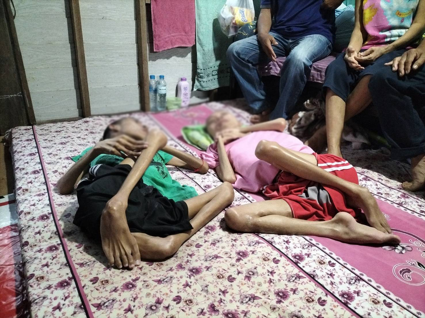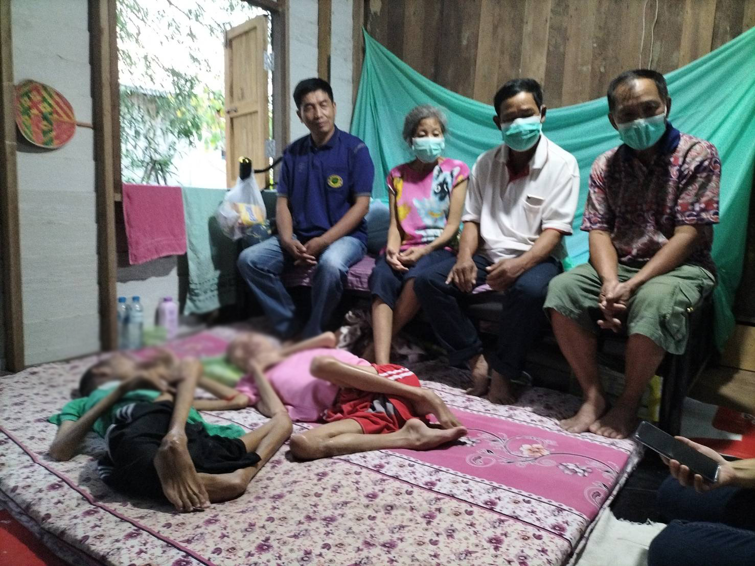 ผู้สื่อข่าวลงพื้นที่บ้านเลขที่ 25 ม.6 ต.แม่ลอย อ.เทิง จ.เชียงราย เพื่อสอบถามเกี่ยวกับเรื่องดังกล่าว โดยมีนางละม้าย เสาร์จันทร์ อายุ 59 ปี น้าสาวของผู้ป่วยทั้ง 2 คน เล่าให้ผู้สื่อข่าวฟังว่า ตนเป็นน้องของพ่อเด็ก ดูแลหลานทั้ง 2 คน มาตั้งแต่พ่อและแม่เด็กแยกทางกัน ตอนเด็กๆ ทั้ง 2 คนก็เป็นเหมือนเด็กปกติทั่วไป แต่ช่วงที่ “น้องมาด” หรือพัฒน์พงษ์ เสาร์จันทร์ พี่ชายคนโต อายุได้ประมาณ 8 ปี กำลังเรียนอยู่ชั้น ป.1 ก็ได้หกล้มและมีอาการกล้ามเนื้ออ่อนแรงลงเรื่อยๆ ซึ่งเป็นอาการแรกเริ่มของโรคโปลิโอ จนเดินไม่ได้ในที่สุด ต้องนั่งรถเข็น แต่พอจะช่วยเหลือตัวเองได้บ้าง ตอนนั้นน้องชายซึ่งก็คือ “น้องแมน” หรือภูวนัย เสาร์จันทร์ ซึ่งอายุได้ 5 ปี ยังได้ช่วยดูแลพี่ชาย ช่วยเข็นรถเข็นพาพี่ชายไปโรงเรียนและไปเที่ยวตามหมู่บ้านได้อยู่