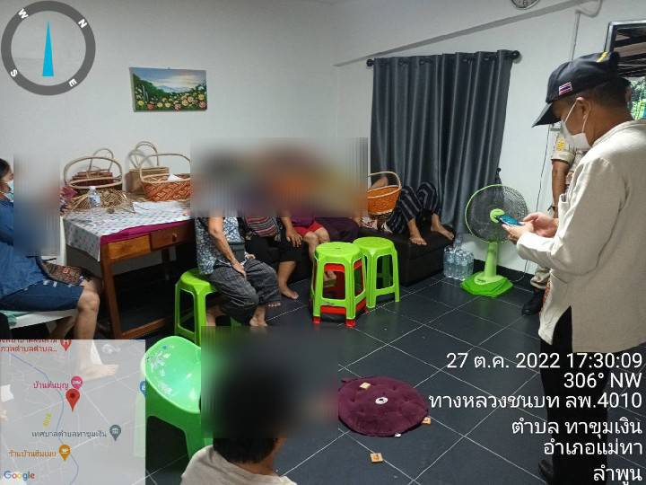 เมื่อวันที่ 27 ต.ค. 65 เวลาประมาณ 17:00 น. นายสมาน กองแก้ว นอภ.แม่ทา มอบหมายให้ นายพงษ์ศักดิ์ อุสาหะพงษ์สิน ปลัดหัวหน้ากลุ่มงานบริหารงานปกครอง พร้อมด้วย ปลัดฝ่ายความมั่นคง สมาชิก อส.กองร้อย อส.อ.แม่ทา ที่ 3 ผญบ.และ ผช.ผญบ.ม. 2 ต.ทาขุมเงิน อ.แม่ทา จ.ลำพูน เข้าตรวจสอบจับกุมผู้ลักลอบเล่นการพนันภายในห้องพักด้านหลังบ้านเลขที่ 248 ม.2 ต.ทาขุมเงิน ตามที่มีการร้องเรียนผ่าน ศดธ.อ.แม่ ทา มีผลการดำเนินการดังนี้