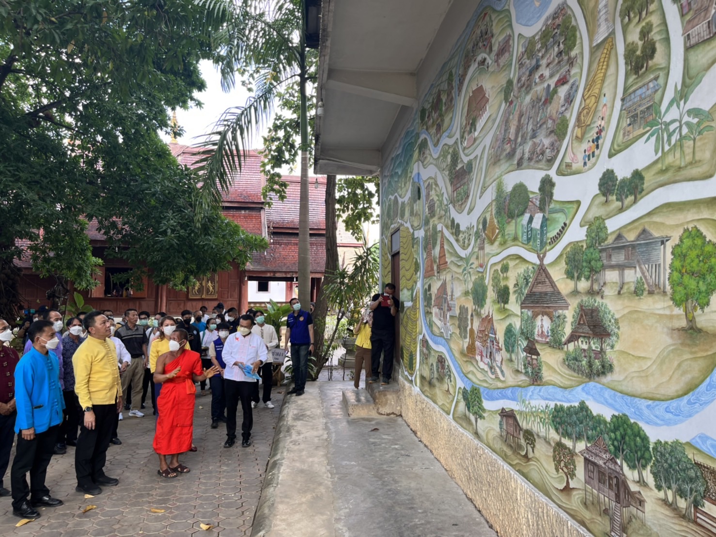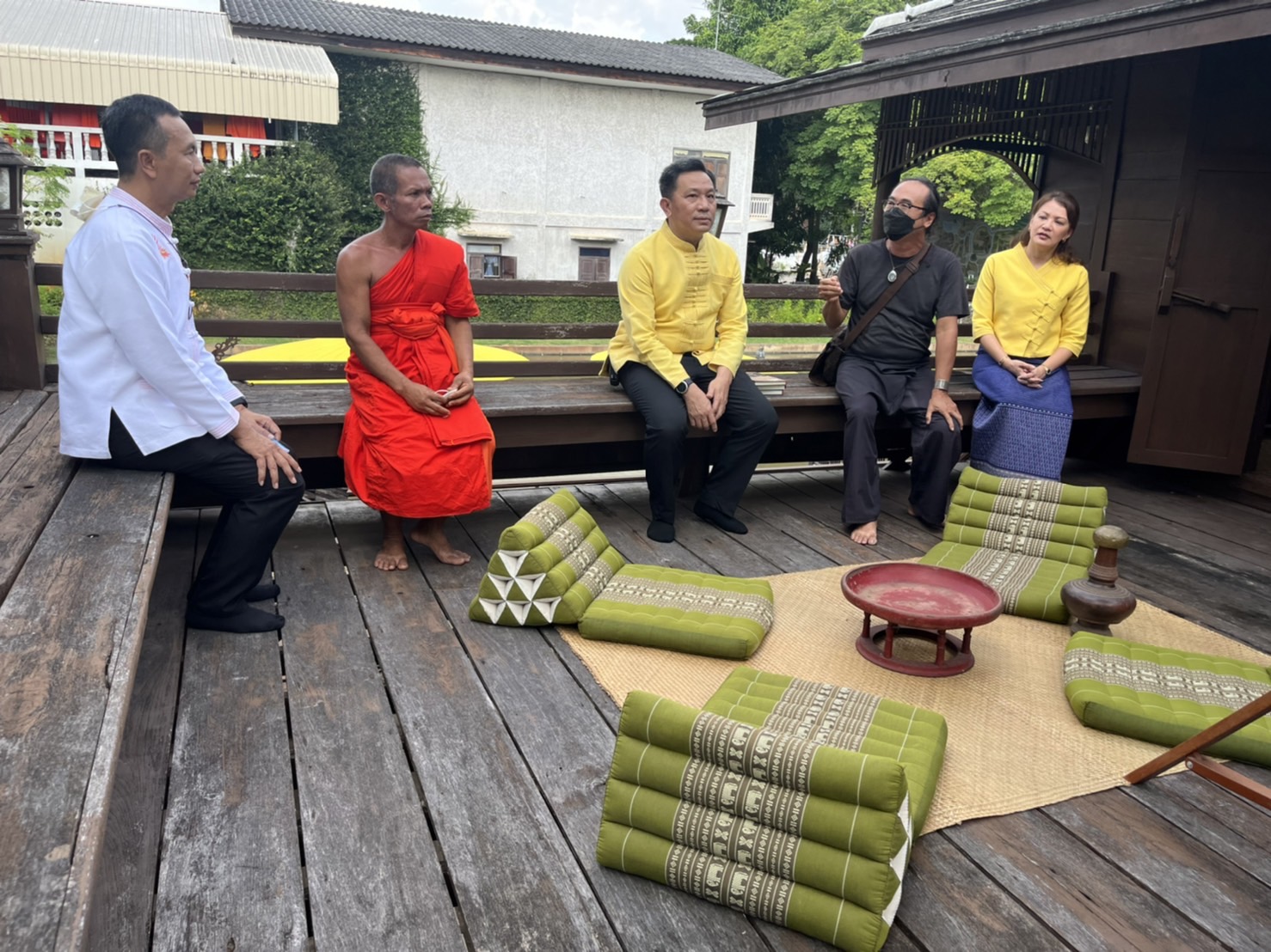 จากนั้นเข้าเยี่ยมชมเฮือนไตเขิน โดยมีนายรุ่งโรจน์ เปี่ยมยศศักดิ์ โครงการอนุรักษ์เฮือนโบราณสันป่าตอง ได้ทำหน้าที่อธิบายถึงเฮือนมีชีวิตของชุมชนร่วมกับวัด ช่วยกันดูแลรักษาเฮือนไตเขินสันป่าตอง หรือเฮือนไตเขินลุมน้ำขาน ซึ่งท่านผู้ว่าฯชื่นชอบมาก และพร้อมสนับสนุนการท่องเที่ยวของทางวัด