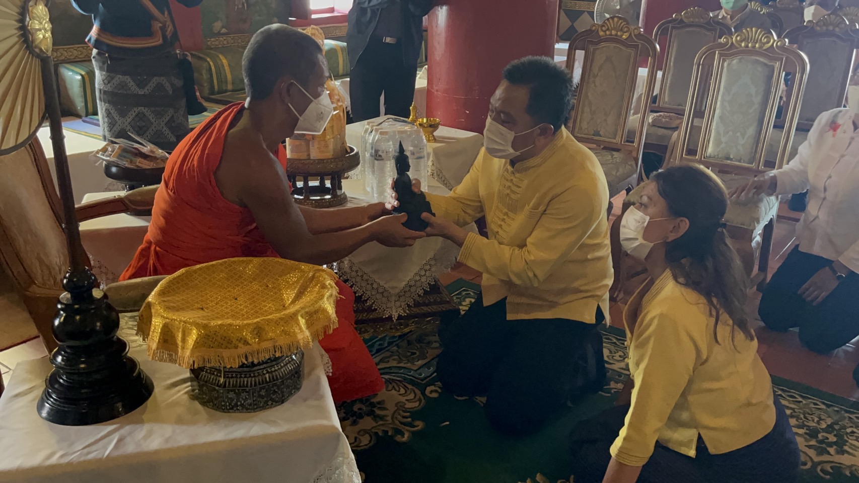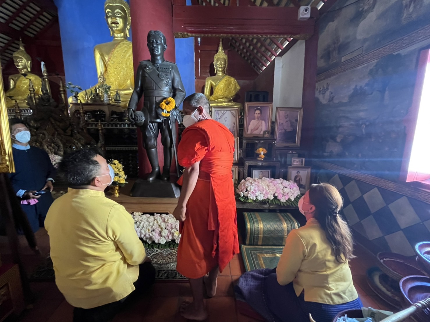พระครูถาวรนพรัฐ นำเข้ากราบพระประธานในวัดศรีนวรัฐ คือ พระเจ้าสักคงตัน และกราบพระบรมฉายาลักษณ์พระเจ้ากาวิละ จากนั้นรับมอบของที่ระลึก คือ พระเจ้าสักคงตัน ทำมาจากนิลดำ