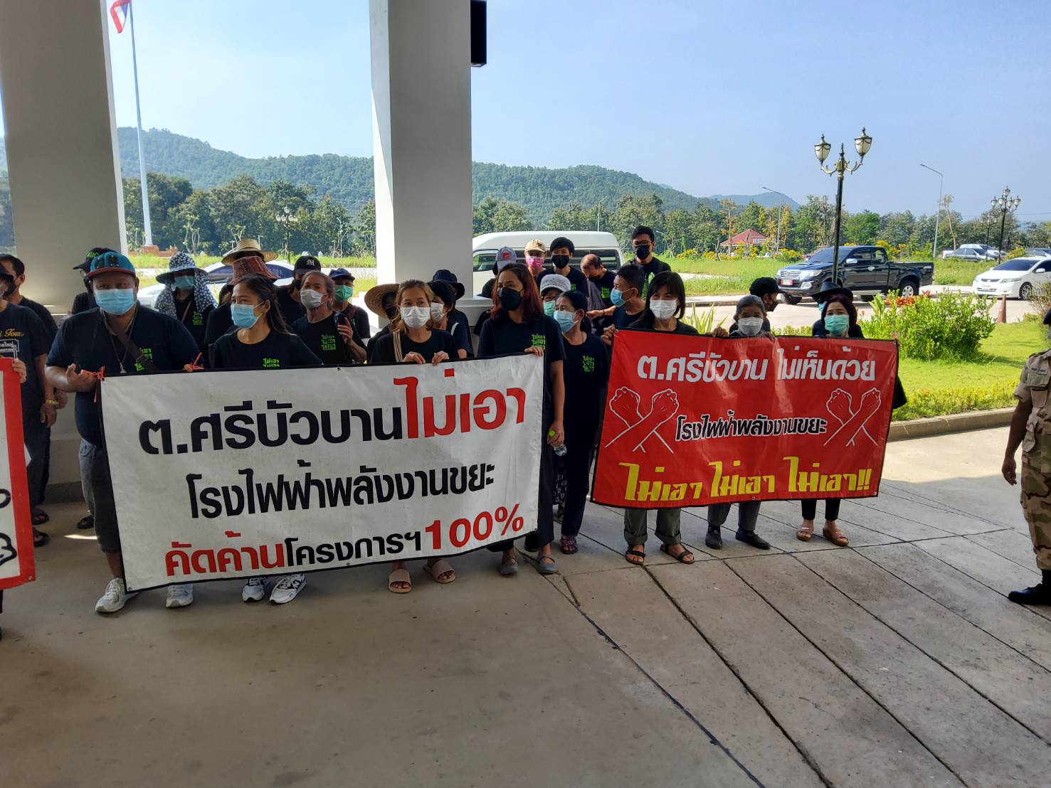 เพื่อสอบถามความคืบหน้าของแนวทางการยุติการจัดหาพื้นที่ก่อสร้างโครงการโรงไฟจากขยะ ที่มีผู้รับผิดชอบคือคณะกรรมการจัดการสิ่งปฏิกูลและมูลฝอยจังหวัดลำพูน ทางกลุ่มได้เคลื่อนไหวคัดค้านโครงการโรงไฟจากขยะมาอย่างต่อเนื่อง ระหว่างชุมนุมมีการแสดงแผ่นป้ายไวนิลเขียนข้อความคัดค้าน อาทิ ต.ศรีบัวบาน ไม่เอาโรงไฟฟ้าพลังงานขยะ ,ชาวศรีบัวบาน ขอคัดค้านการสร้างบ่อขยะ , ต.ศรีบัวบ้านไม่เห็นด้วย โรงไฟฟ้าพลังงานขยะ