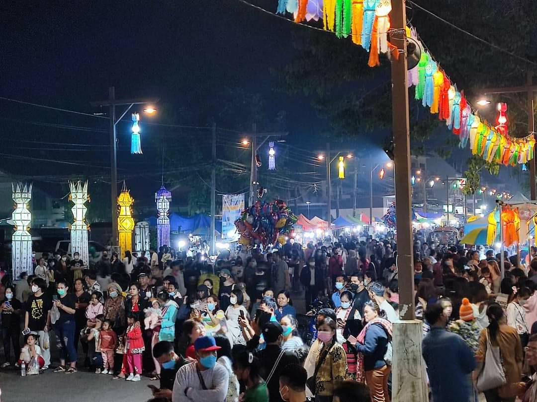 เมื่อเวลา 20.30 น. วันที่ 8 พ.ย.65 ที่ศาลาหน้าที่ว่าการอำเภอเชียงแสน ริมฝั่งแม่น้ำโขง อ.เชียงแสน จ.เชียงราย มีการจัดงานประเพณีลอยกระทง “ป๋าเวณียี่เป็ง” ของเทศบาลตำบลเวียงเชียงแสน นักท่องเที่ยวหลั่งไหลนำกระทงมาลอยในแม่น้ำโขงกันจำนวนมาก ทำให้ถนนสายริมโขงคลาคล่ำไปด้วยนักท่องเที่ยวที่มารอดูขบวนแห่กระทง มีนายคฑาสิทธิ์ เนื่องหล้า นายอำเภอเชียงแสน นางเกศสุดา สังขกร นายกเทศมนตรีตำบลเวียงเชียงแสน และหัวหน้าส่วนราชการร่วมเปิดงาน