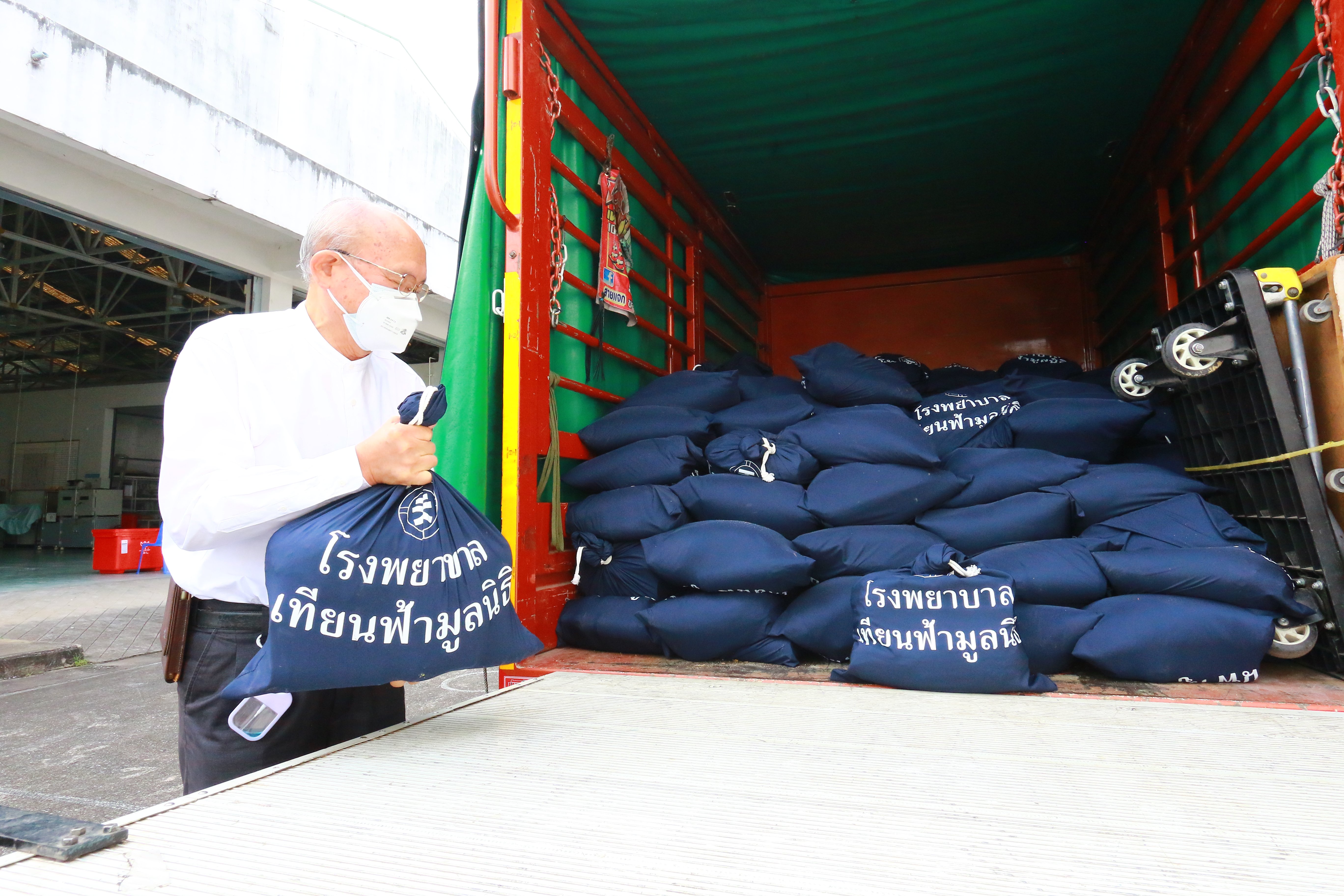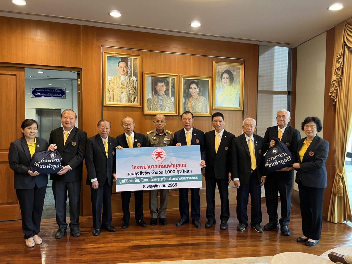 ประธานกรรมการมูลนิธิขาเทียมฯ รับมอบถุงยังชีพจากคณะผู้แทนโรงพยาบาลเทียนฟ้ามูลนิธิ