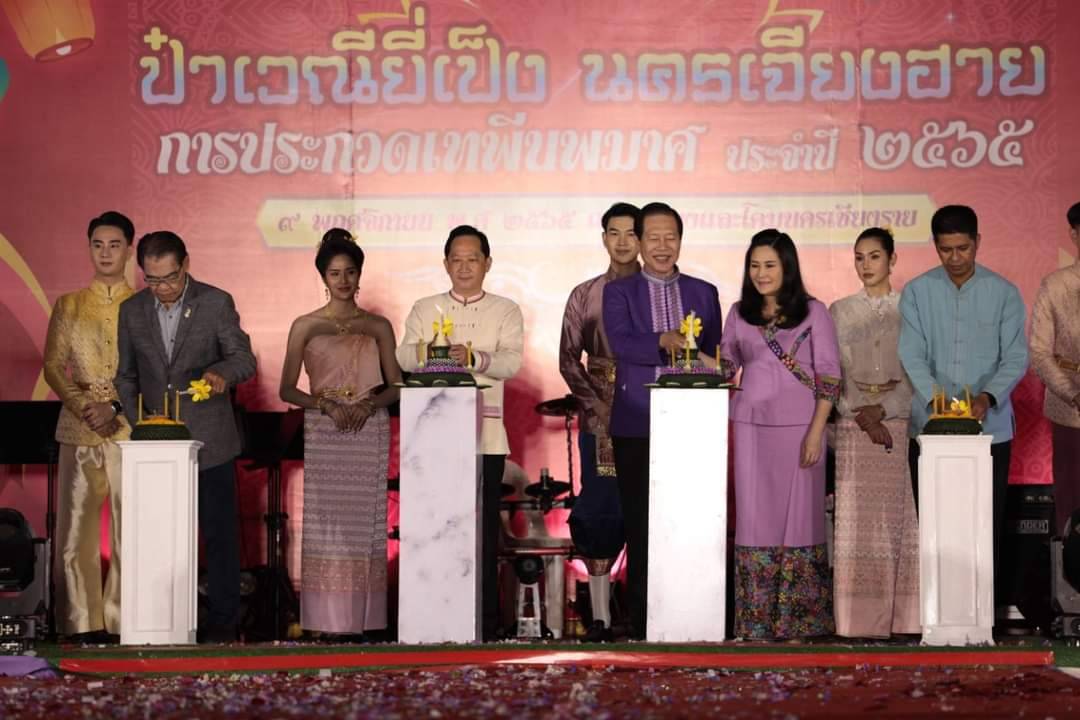 ค่ำวันที่ 9 พ.ย. 65 ที่สวนตุงและโคมเทศบาลนครเชียงราย อ.เมืองเชียงราย นายภาสกร บุญญลักษม์ ผู้ว่าราชการจังหวัดเชียงราย เป็นประธานในพิธีเปิดงาน “ป๋าเวณียี่เป็ง นครเจียงฮาย” โดยมี นายวันชัย จงสุทธานามณี นายกเทศมนตรีนครเชียงราย นางรัตนา จงสุทธานามณี นายกสมาคมกีฬาแห่งจังหวัดเชียงราย หัวหน้าส่วนราชการ ตลอดจนประชาชน ทั้งชาวไทย และชาวต่างชาติ ร่วมงานในครั้งนี้อย่างคับคั่ง