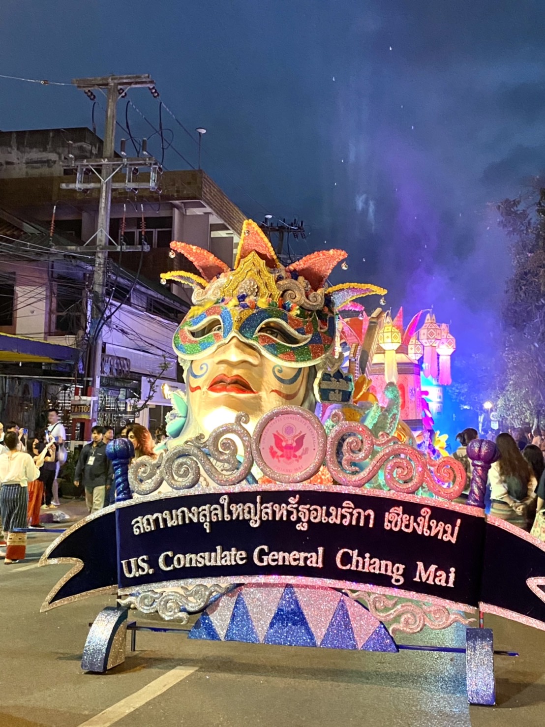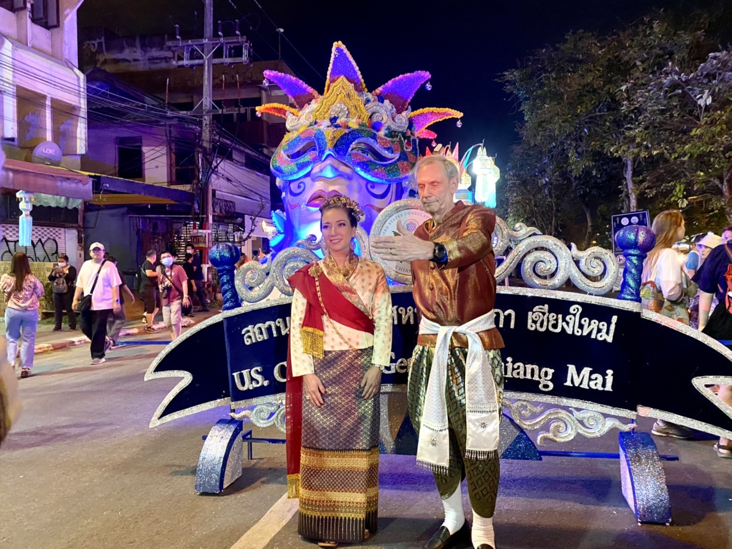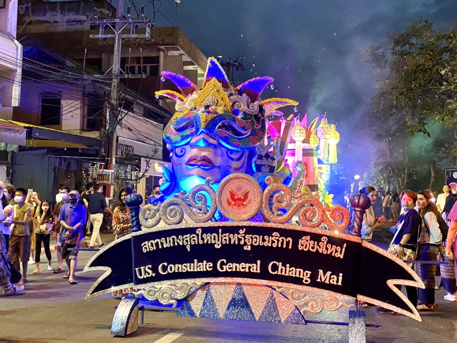 วันที่ 9 พฤศจิกายน 2565 ขบวนกระทงใหญ่ของสถานกงสุลใหญ่สหรัฐฯ นำโดยเอกอัครราชทูตสหรัฐฯ ประจำประเทศไทย คุณบ๊อบ โกเดค กงสุลใหญ่สหรัฐฯ เชียงใหม่ คุณลิสา บูเจนนาส พร้อมด้วยพนักงานและครอบครัวกว่า 65 คน และนักศึกษาชาวอเมริกัน ที่กำลังศึกษาอยู่ที่มหาวิทยาลัยเชียงใหม่