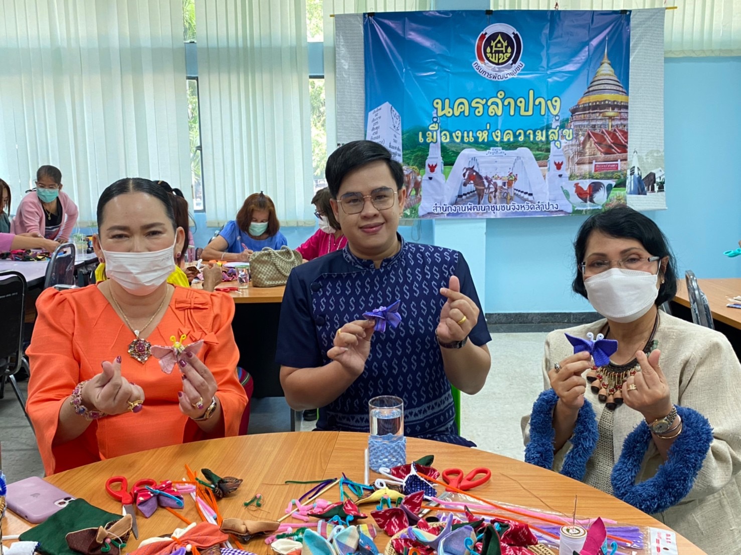 จังหวัดลำปาง เร่งประดิษฐ์ผีเสื้อ จากเศษผ้าไทย ผ้าอัตลักษณ์ท้องถิ่น ก่อนนำไปออกร้านกาชาดของสมาคมแม่บ้านมหาดไทย ณ งานกาชาด ที่สวนลุมพินี กรุงเทพมหานคร