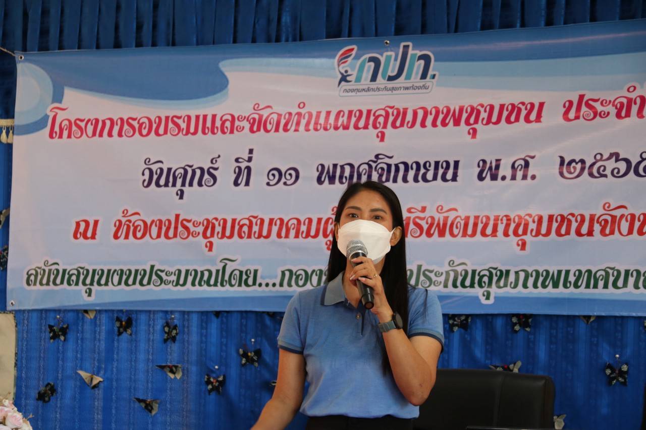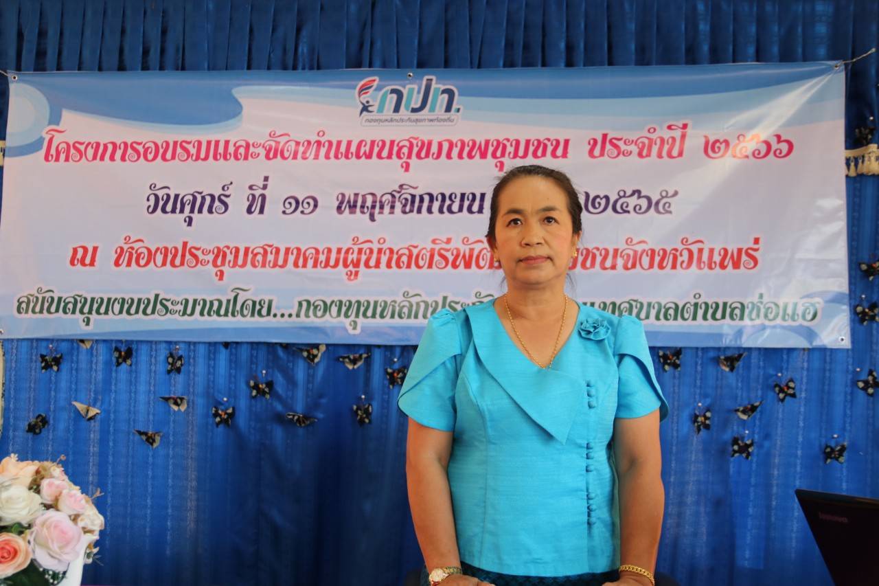 กล่าวรายงานถึงวัตถุประสงค์การดำเนินโครงการซึ่งมีกลุ่มเป้าหมายเข้าร่วมอบรมคือ ผู้อำนวยการ รพ.สต.ช่อแฮ ป่าแดง, ผู้บริหารสถานศึกษา-คุณครูโรงเรียนในพื้นที่เทศบาลตำบลช่อแฮ ประธานแม่บ้านตำบลช่อแฮ ป่าแดง, ประธานอสม.ต.ช่อแฮ ป่าแดง, ผู้อำนวยการโรงเรียนอนุบาลเทศบาลตำบลช่อแฮ, หัวหน้าศูนย์พัฒนาเด็กเล็กเทศบาลตำบลช่อแฮ, ประธานผู้สูงอายุและกำนัน-ผู้ใหญ่บ้านตำบลช่อแฮ ฯลญ เพื่อให้ได้รับความรู้ความเข้าใจเกี่ยวกับการดำเนินงานของกองทุนหลักประกันสุขภาพเทศบาลตำบลช่อแฮ การขอรับการสนับสนุนงบประมาณในการจัดทำแผนงานโครงการและได้มีการแลกเปลี่ยนเรียนรู้ ค้นหาปัญหาสุขภาพเพื่อนำไปจัดทำเป็นแผนงานโครงการในการแก้ไขปัญหาสุขภาพของชุมชนต่อไป ณ ห้องประชุมสมาคมผู้นำสตรีพัฒนาชุมชนจังหวัดแพร่
