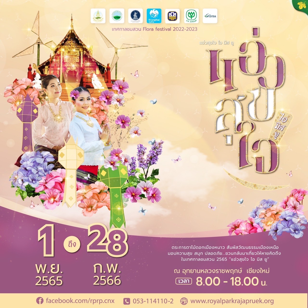 ตระการตาไม้ดอกเมืองหนาว สัมผัสวัฒนธรรมเมืองเหนือ มอบความสุข สนุก ปลอดภัย ชวนกลับมาเที่ยวให้หายคิดถึงในเทศกาลชมสวน 2565 “แอ่วสุขใจไอ มิส ยู” 1 พฤศจิกายน 2565 – 28 กุมภาพันธ์ 2566 ณ อุทยานหลวงราชพฤกษ์ จังหวัดเชียงใหม่