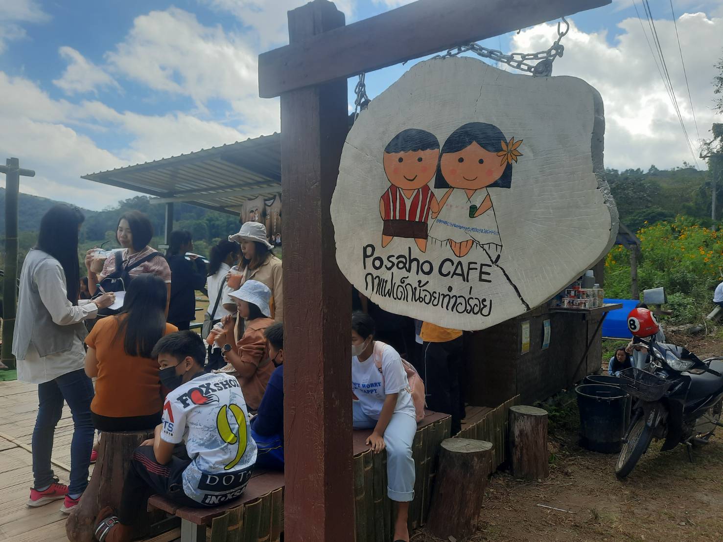 อย่างไรก็ตาม สำหรับช่วงฤดูการดอกบัวตองบานบนดอยแม่อูคอ ซึ่งจะมีนักท่องเที่ยวเดินทางมาเที่ยวชมเป็นจำนวนมาก และนักท่องเที่ยวบางส่วนก็จะเดินทางไปเที่ยวยังน้ำตกแม่สุริน ที่มีความสูงและสวยงามจะผ่านจุดกาแฟเด็กดอย ที่เป็นนักเรียนจากโรงเรียนหัวบ้านแม่สุริน คอยมาให้บริการกาแฟแก่นักท่องเที่ยวคือร้าน โพซาโฮ Posaho cafe’ เพื่อหารายได้พิเศษ โดยมีคุณครูคอยกำกับดูแลอย่างใกล้ชิด ถือว่าเป็นการหารายได้ช่วยเหลือเด็กนักเรียนในช่วงฤดูการท่องเที่ยว และเด็กๆต่างก็ชื่นชอบที่ตัวเองได้มีรายได้พิเศษ เพื่อช่วยเหลือพ่อแม่ครอบครัวตัวเอง นอกจากมีกาแฟแล้ว ยังมีของที่ระลึกอย่างอื่นอีก เช่น เสื้อเด็กดอยและแก้วกาแฟจากไม้ไผ่เป็นต้น