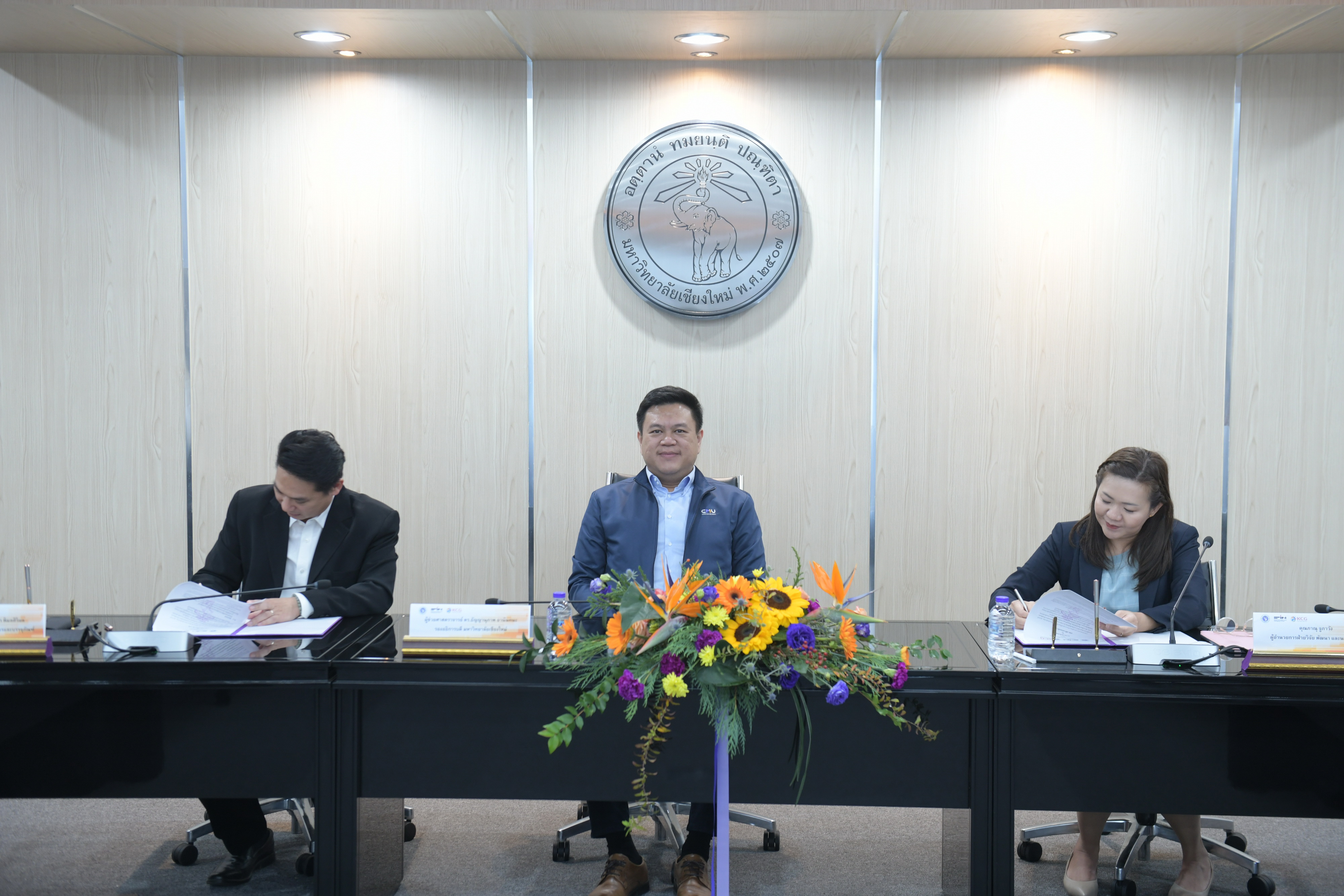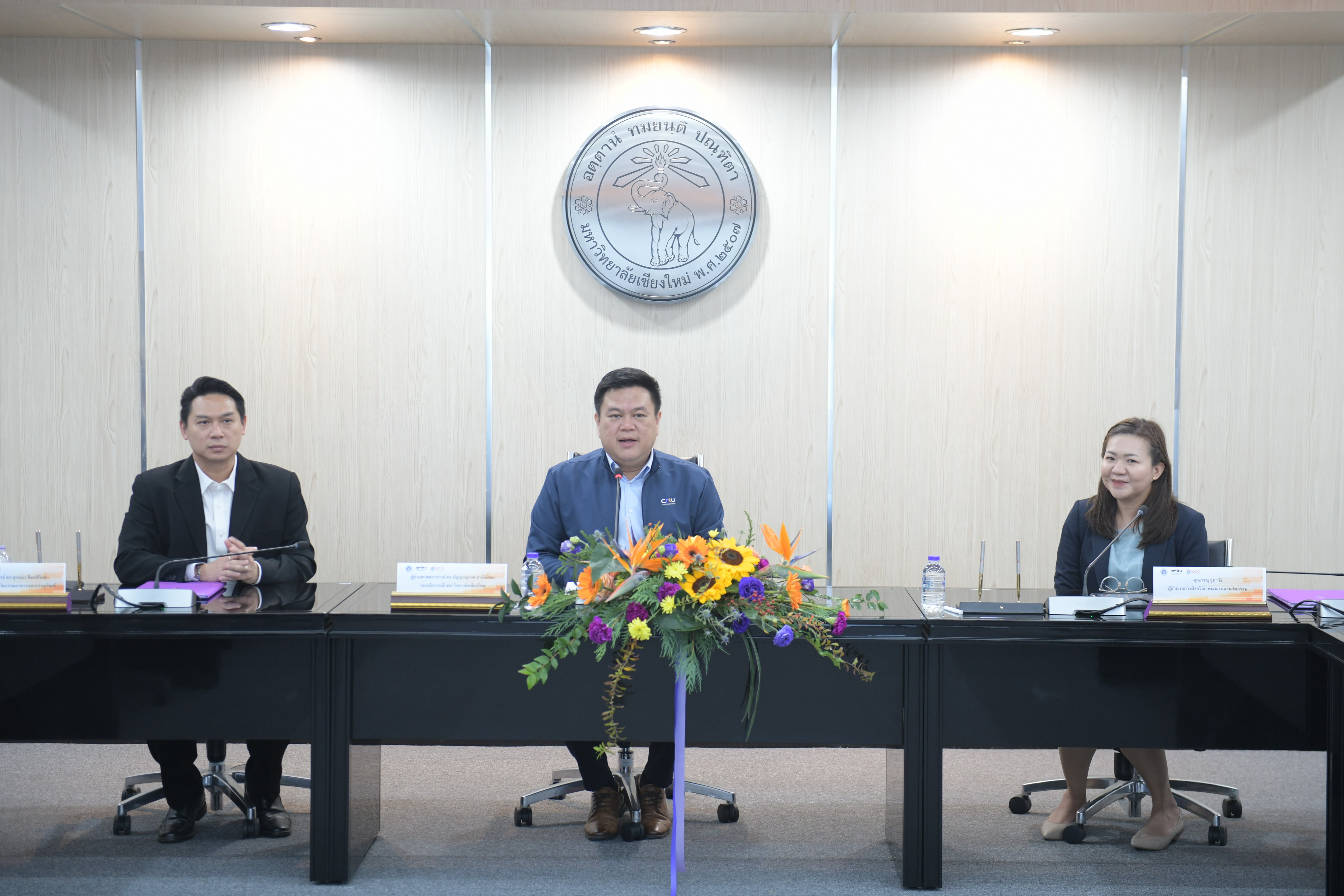 ผู้ช่วยศาสตราจารย์ ดร.ธัญญานุภาพ อานันทนะ รองอธิการบดี มหาวิทยาลัยเชียงใหม่ ให้การต้อนรับคุณภาณุ จูภาวัง ผู้อำนวยการฝ่ายวิจัย พัฒนา และนวัตกรรม บริษัท เคซีจี คอร์-ปอเรชั้นจำกัด ในโอกาสเยือนมหาวิทยาลัยเชียงใหม่ เพื่อร่วมพิธีลงนามบันทึกข้อตกลงความร่วมมือทางวิชาการ ระหว่าง ศูนย์นวัตกรรมอาหารและบรรจุภัณฑ์ มหาวิทยาลัยเชียงใหม่ กับ บริษัท เคซีจี คอร์-ปอเรชั้นจำกัด โดยมี รองศาสตราจารย์ ดร.ยุทธนา พิมลศิริผล ผู้อำนวยการฯ ร่วมลงนาม ณ ห้องประชุมพระยาศรีวิสารวาจา สำนักงานมหาวิทยาลัย มหาวิทยาลัยเชียงใหม่ เมื่อวันอังคารที่ 15 พฤศจิกายน พ.ศ.2565