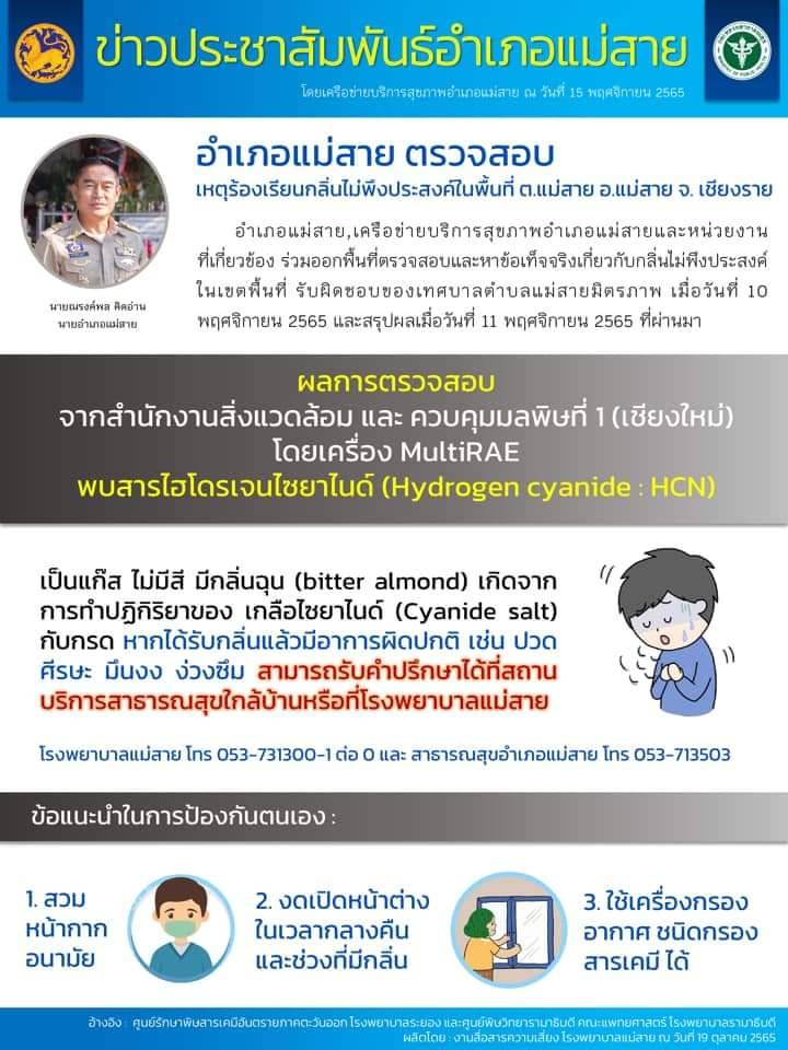 ชาวบ้านแม่สายระทมหนัก! กลิ่นไฮโดรเจนไซนาไนด์โชยข้ามชายแดน เตรียมตั้งศูนย์ EOC ช่วยเหลือผู้รับผลกระทบ