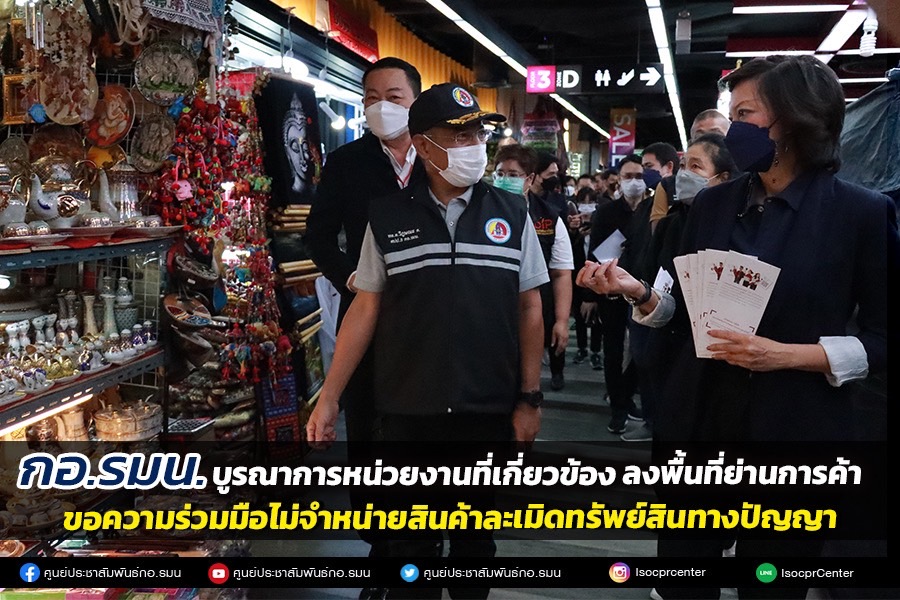 กอ.รมน. บูรณาการร่วมกับกระทรวงพาณิชย์ และ บก.ปอศ. ลงพื้นที่ตรวจสอบย่านการค้า พร้อมขอความร่วมมือไม่จำหน่ายสินค้าละเมิดทรัพย์สินทางปัญญา