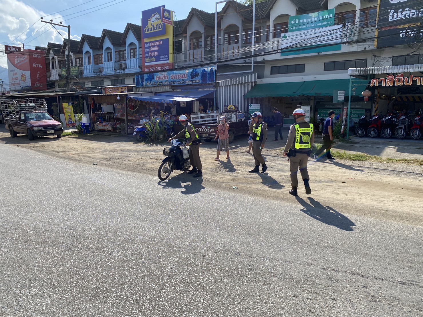 เจ้าหน้าที่ตำรวจจราจร สภ.ปาย จ.แม่ฮ่องสอน ช่วยเหลือประชาชนขับขี่จักรยานยนต์ล้ม เนื่องจากถนนต่างระดับ จึงได้เข้าช่วยเหลือและอำนวยความสะดวก