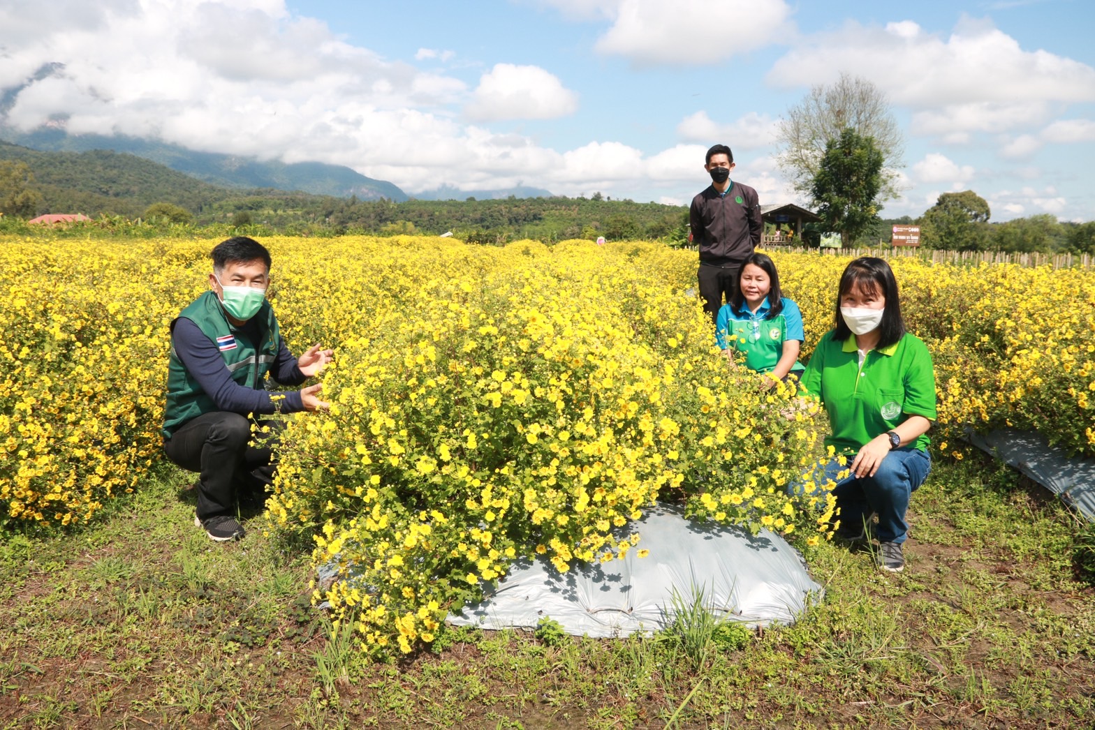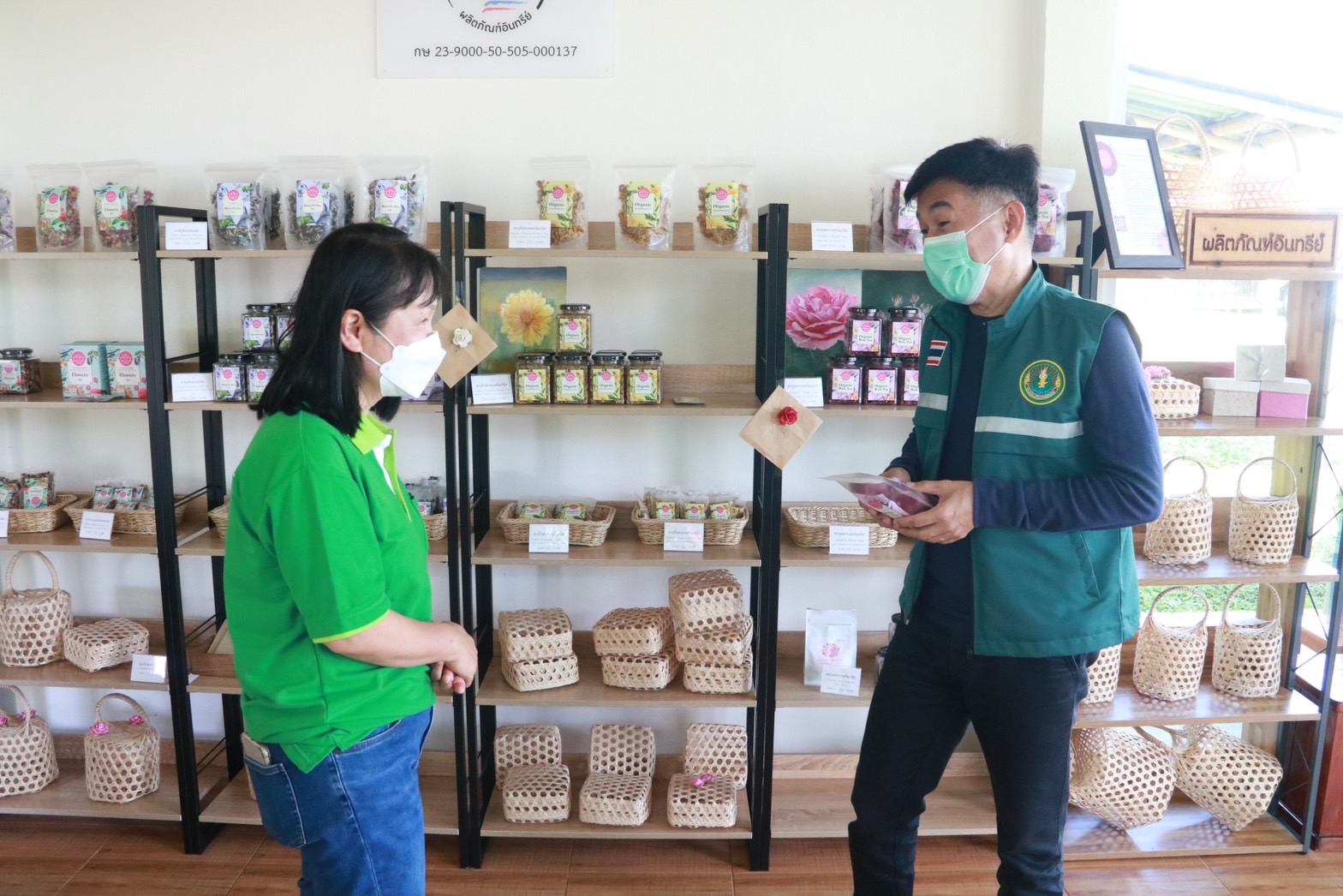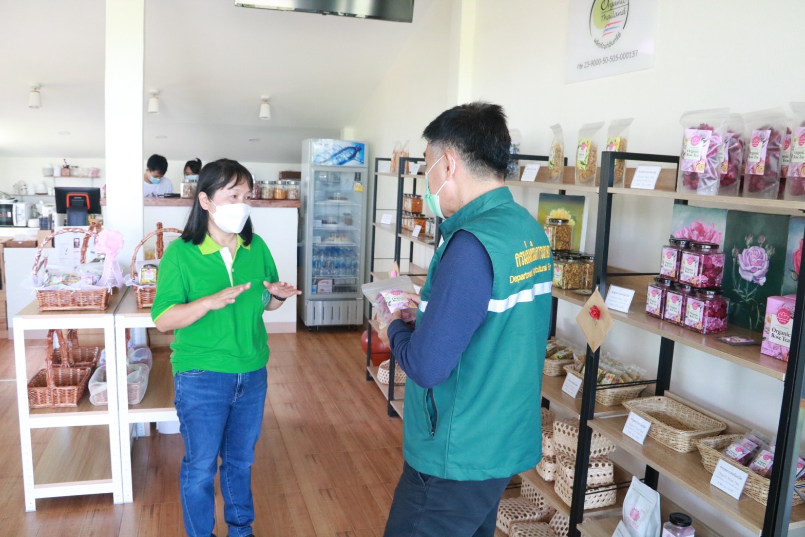 วันที่ 18 พฤศจิกายน 2565 เวลา 11.30 น. นายเจริญ พิมพ์ขาล เกษตรจังหวัดเชียงใหม่ ติดตามการดำเนินงานโครงการเกษตรอินทรีย์ ณ สวนบัวชมพู ตำบลแม่นะ อำเภอเชียงดาว จังหวัดเชียงใหม่ เยี่ยมแปลงเกษตรอินทรีย์สวนบัวชมพู ณ จอมคีรี นางศรัณยา เกษตรกรต้นแบบด้านเกษตรอินทรีย์ ประกอบกิจกรรมทางการเกษตรตามแนวทางเศรษฐกิจพอเพียง บนพื้นที่ 54 ไร่ โดยแบ่งพื้นที่ปลูกข้าว ,พืชผักสมุนไพร,ไม้ดอก เช่น กุหลาบ เก๊กฮวย อัญชัญ และนำไปแปรรูปเป็นชาดอกไม้ ที่ได้มาตรฐานอาหารและยา จากกระทรวงสาธารณสุข พร้อมเป็นต้นแบบศูนย์เรียนรู้ในทุกมิติ ตั้งแต่การผลิตจนถึงกระบวนการแปรรูป ได้แก่ศูนย์เรียนรู้การเพิ่มประสิทธิภาพการผลิตสินค้าเกษตร (ด้านการผลิตและการตลาด) ,ศูนย์เรียนรู้มาตรฐานอาหารและยา (ด้านแปรรูป) พร้อมต่อยอดงานหัตถกรรมดาราอั้งในพื้นที่แสดง และจัดจำหน่ายสร้างรายได้แก่ชุมชน