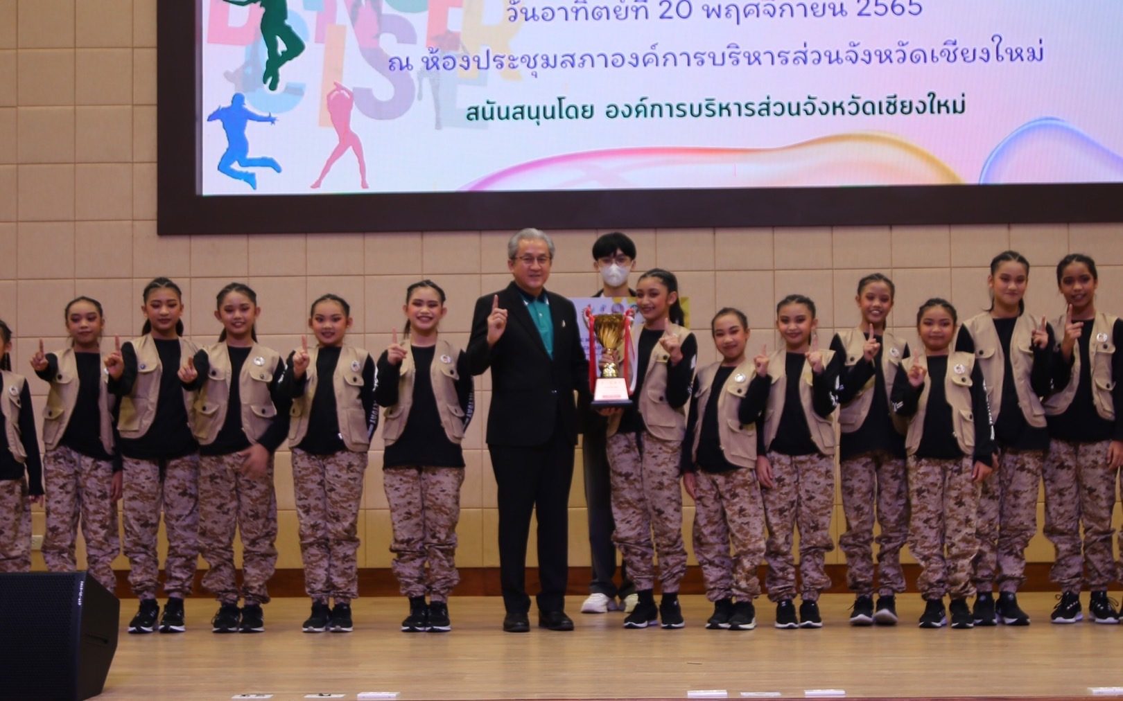 วันนี้ (20 พ.ย.65) นายนิรัตน์ พงษ์สิทธิถาวร ผู้ว่าราชการจังหวัดเชียงใหม่ มอบหมายให้ นายวรวิทย์ ชัยสวัสดิ์ รองผู้ว่าราชการจังหวัดเชียงใหม่เป็นประธานมอบรางวัลให้แก่ผู้เข้าร่วมการแข่งขัน TO BE NUMBER ONE TEEN DANCERCISE CHIANG MAI CHAMPIONSHIP 2023 รอบคัดเลือก โดยมี นายแพทย์จตุชัย มณีรัตน์ นายแพทย์สาธารณสุขจังหวัดเชียงใหม่ พร้อมด้วย นางวิภาวัลย์ วรพุฒิพงษ์ รองนายกองค์การบริหารส่วนจังหวัดเชียงใหม่ หัวหน้าส่วนราชการ และคณะกรรมการผู้ตัดสินฯ ร่วมเป็นเกียรติในพิธี