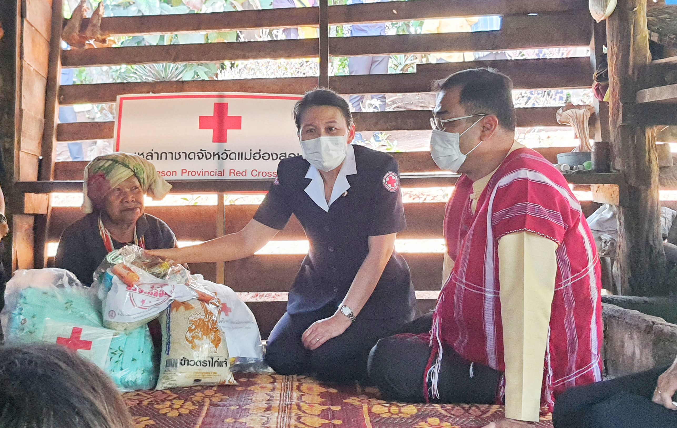 ในการนี้ ผู้ว่าราชการ จ.แม่ฮ่องสอน นายกเหล่ากาชาด จ.แม่ฮ่องสอน หัวหน้าส่วนราชการ จ.แม่ฮ่องสอน คณะกรรมการแม่บ้านมหาดไทย จ.แม่ฮ่องสอน หน่วยงานราชการ ได้ร่วมกันมอบเครื่องอุปโภค-บริโภค พร้อมมอบทะเบียนบ้าน และเยี่ยมชมบ้านที่ก่อสร้าง