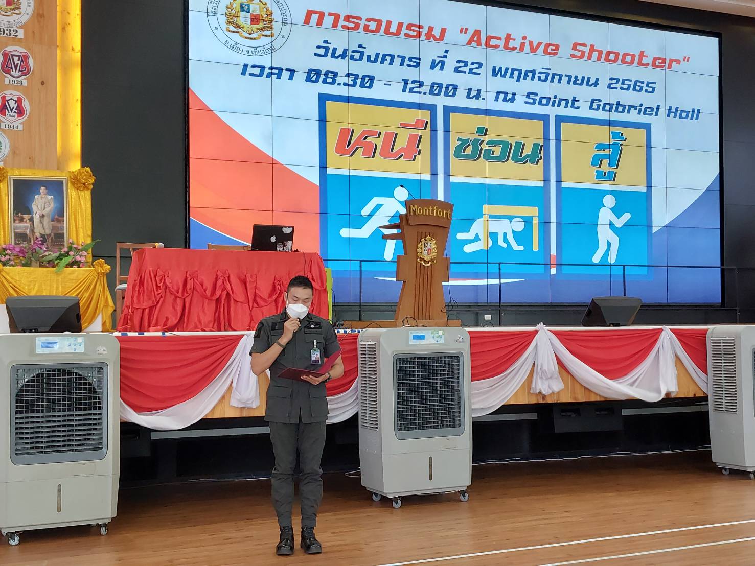 วันที่ 22 พฤศจิกายน 2565 เวลา 12.00 น.พล.ต.ท.ปิยะ ต๊ะวิชัย ผบช.ภ.5 ได้มาเป็นประธานในพิธีปิดการฝึกอบรม การเอาตัวรอดจากเหตุการณ์กราดยิง (Active Shooter) ให้แก่คณะครู อาจารย์ นักเรียน โรงเรียนมงฟอร์ตวิทยาลัย แผนกประถม จำนวน 40 คน โดย พล.ต.ต.วรพงค์ คำลือ ผบก.สส.ภ.5 และวิทยากรจาก กองกำกับการปฏิบัติพิเศษ บก.สส.ภ.5 มาให้ความรู้ วิธีการเอาตัวรอดจากเหตุการณ์กราดยิง พร้อมทั้งแนะนำวิธีการเอาตัวรอดตามหลักยุทธวิธี หนี ซ่อน สู้ซึ่งมีความสำคัญ และสามารถนำไปใช้ได้ หากมีเหตุการณ์เกิดขึ้นจริง ณ โรงเรียนมงฟอร์ตวิทยาลัย แผนกประถม อ.เมือง จ.เชียงใหม่