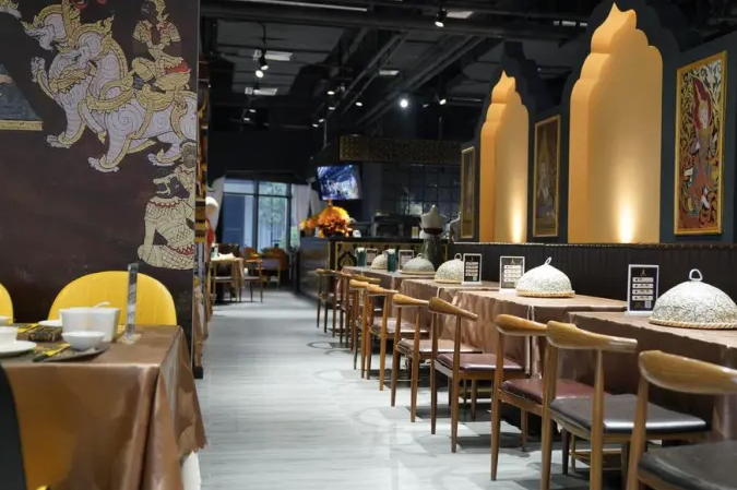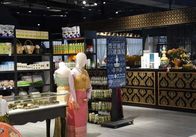 “ไท่เสินจิง” มีบรรยากาศราวกับอยู่ “พิพิธภัณฑ์” ที่นําเสนออาหารไทยสารพัดเมนูและบริการชุดไทยโบราณให้เช่าสวม ใส่ พร้อมประดับตกแต่งร้านด้วยภาพวาดฝาผนังและหน้ากากโขนอันมีเอกลักษณ์ไทย โดยมีการจัดแบ่งพื้นที่เป็นโซนรับ ประทานอาหาร ร้านสะดวกซื้อ จําหน่ายเครื่องดื่ม และเช่าชุดไทยถ่ายภาพ
