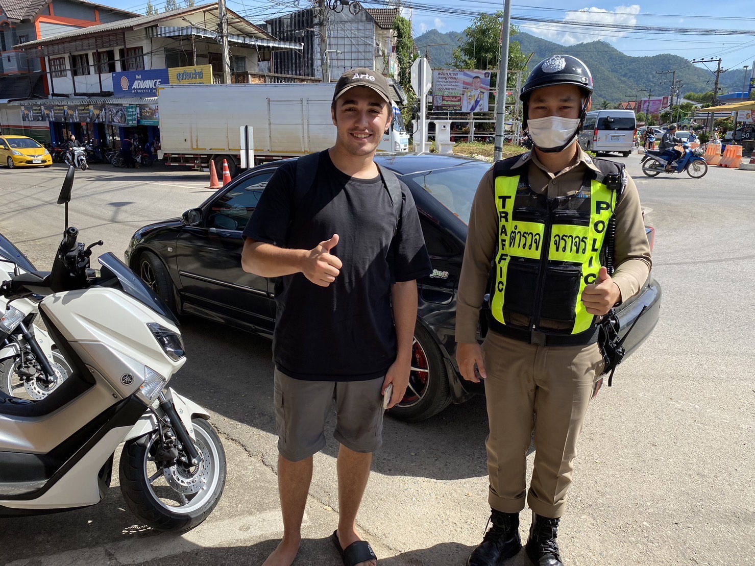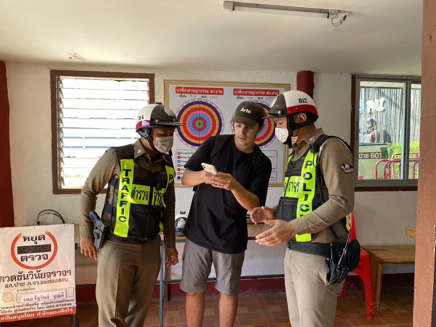 เจ้าหน้าที่ตำรวจจราจร สภ.ปาย จ.แม่ฮ่องสอน ช่วยเหลือนักท่องเที่ยวชาวต่างชาติหลงทางให้เดินทางกลับโรงแรมที่พักด้วยความปลอดภัย