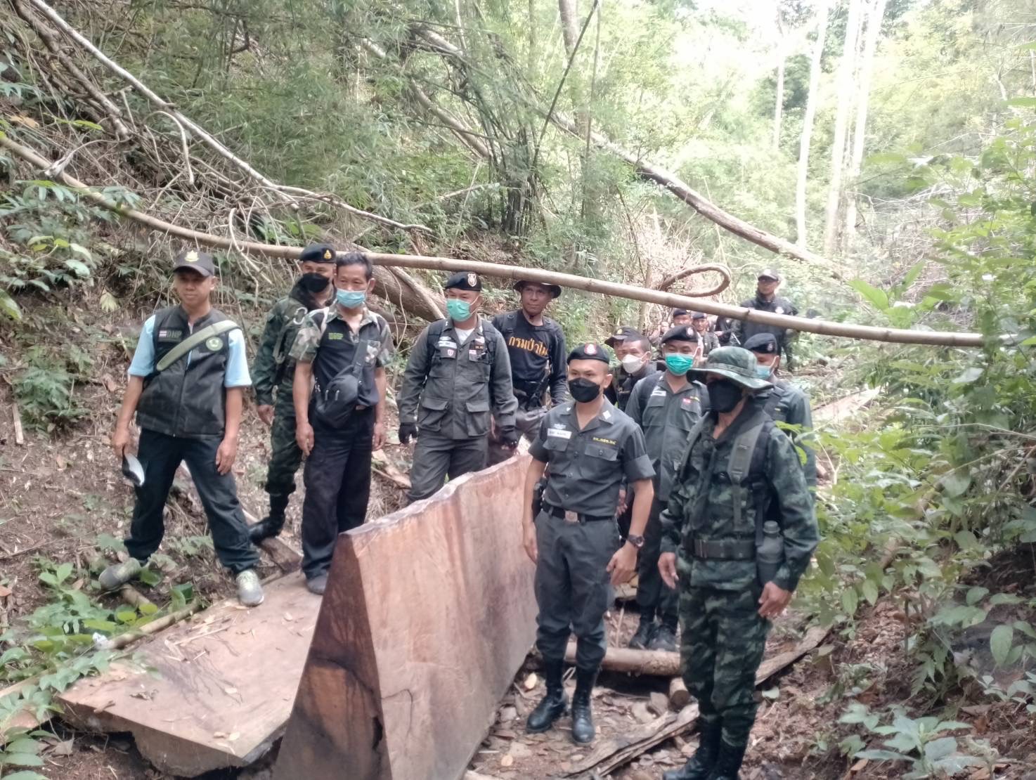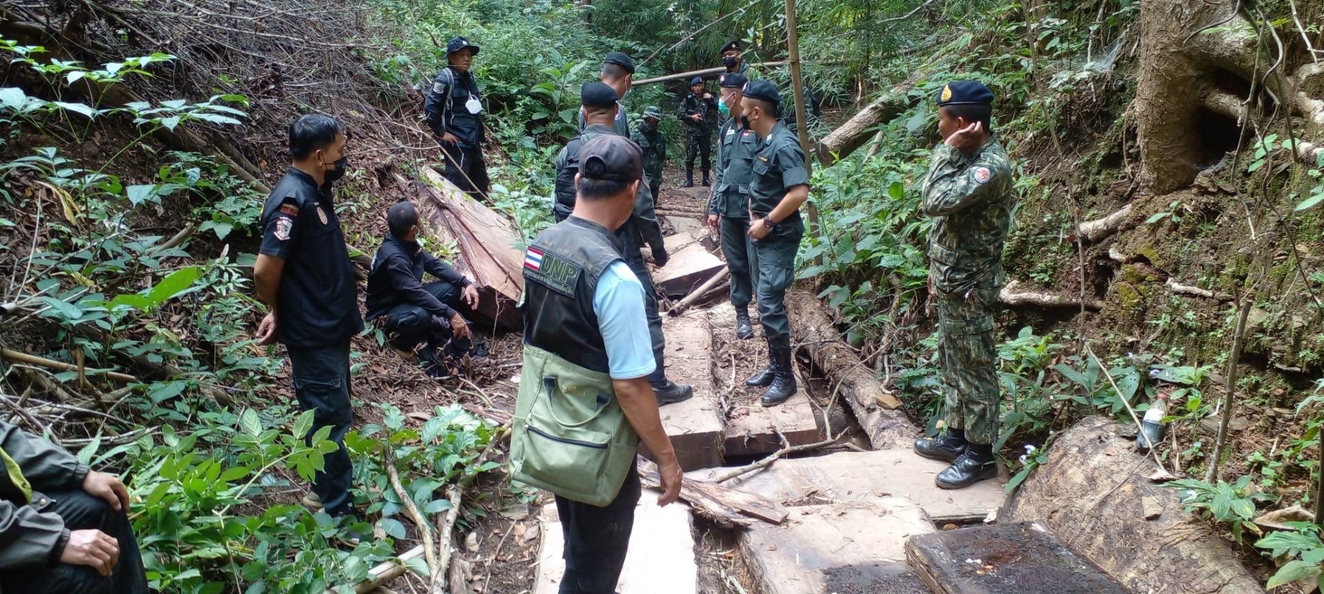 ตชด.ร้อย 336 จมูกไวได้กลิ่นมีการลอบตัดไม้ประดู่ในเขตไทยใกล้ช่องทางบ้านน้ำเพียงดิน ต.ผาบ่อง อ.เมือง จ.แม่ฮ่องสอน เลยสนธิกำลังกับหน่วยงานข้างเคียงเข้าไปจับกุม ได้ไม้ประดู่แปรรูปหน้าขนาดใหญ่ ซ่อนในลำห้วย รอการลำเลียงส่งนายทุนเพื่อส่งต่อไปยังประเทศจีน