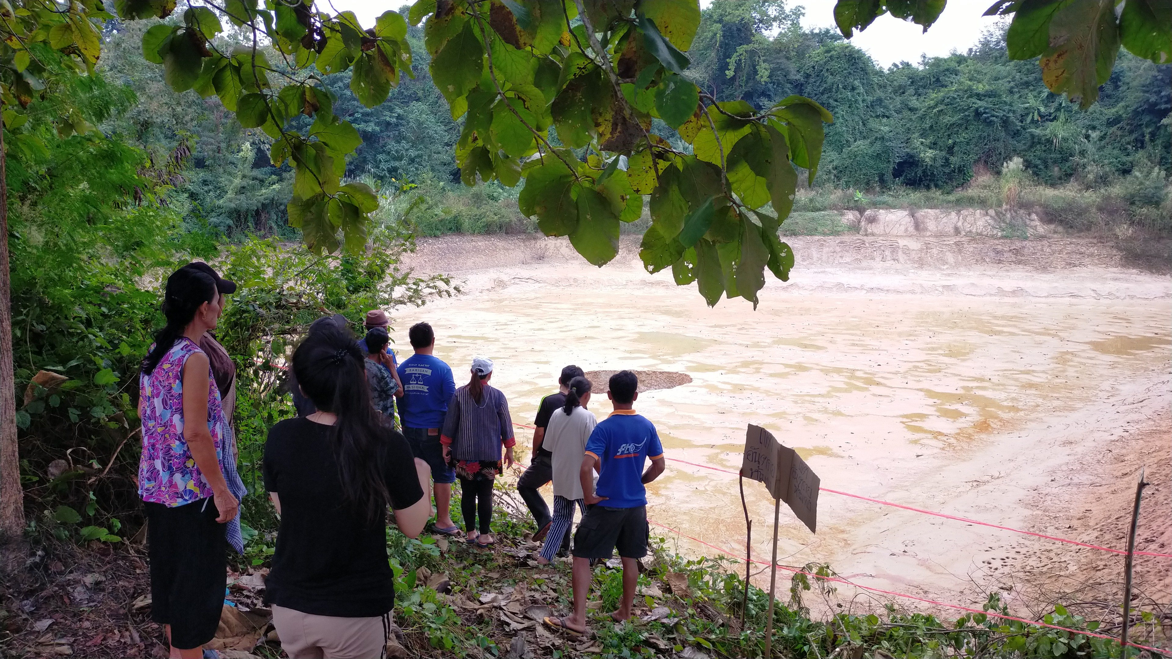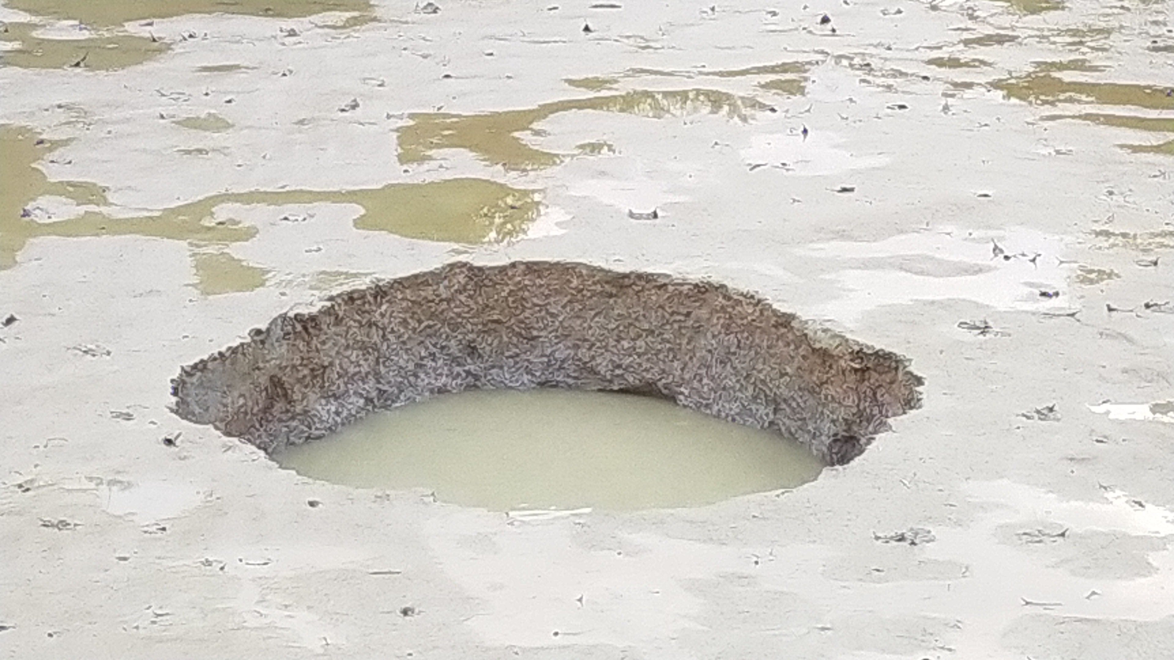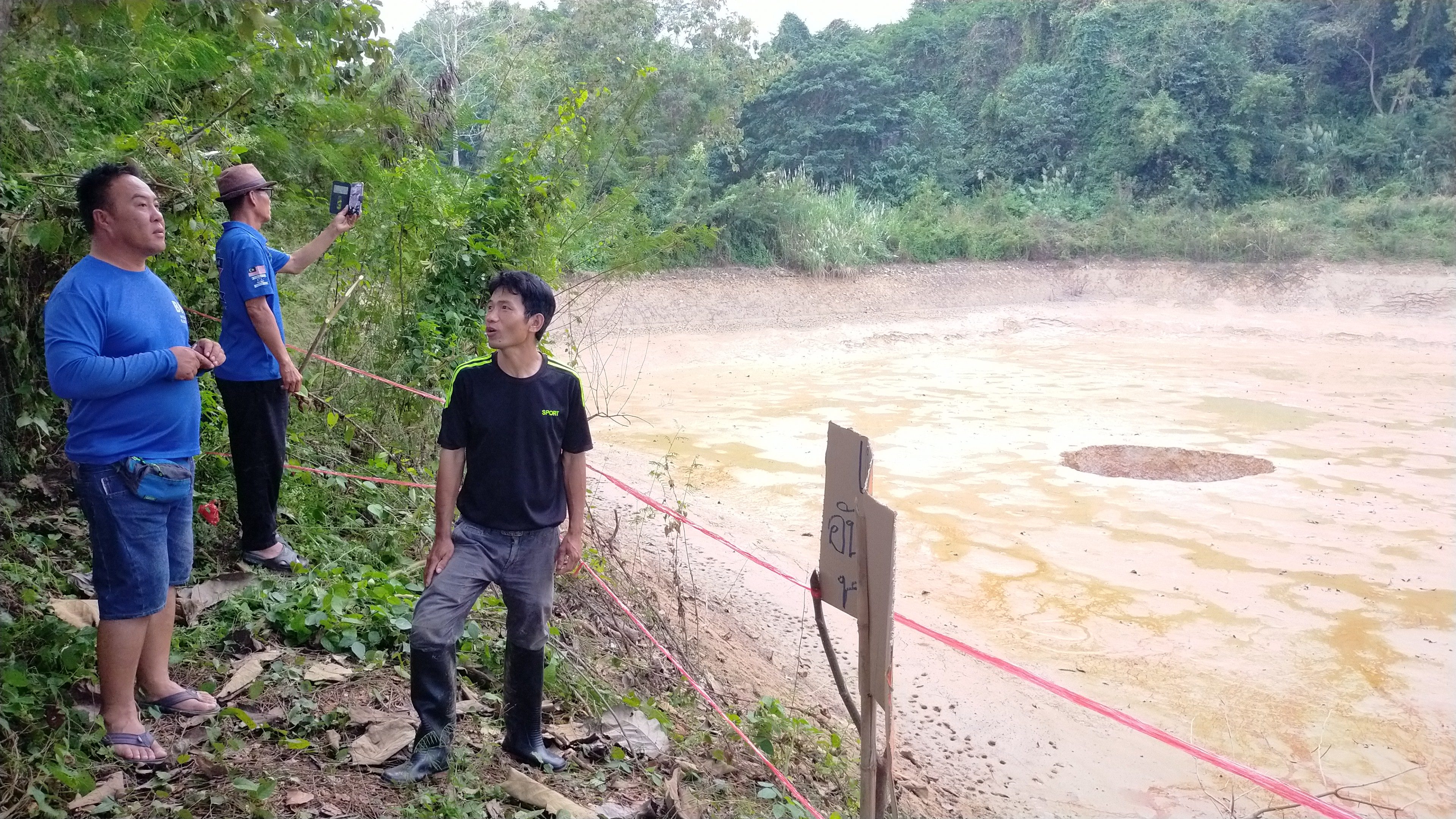 ผู้สื่อข่าวจึงได้ลงพื้นที่เพื่อไปสอบถามเหตุการณ์ โดยเมื่อไปถึงที่เกิดเหตุ ก็พบบ่อน้ำสาธารณะ ขนาดประมาณ 5 ไร่ ตวามลึกจากขอบบ่อถึงก้นบ่อประมาณ 5 เมตร แต่วันนี้กลับแทบจะไม่มีน้ำหลงเหลืออยู่ภายในบ่อเลย และปรากฏหลุมยุบ ขนาดความกว้างประมาณ 1.5 เมตร อยู่กลางบ่อน้ำจำนวน 1 หลุม โดยชาวบ้านได้มีการนำเชือกมากั้นรอบบ่อ เพื่อป้องกันไม่ให้มีคนลงไปในบ่อน้ำ