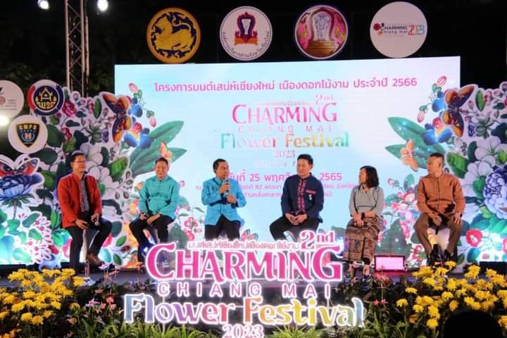 นายอภิชัย เอกวนากุล รองอธิบดีกรมทรัพยากรทางทะเลและชายฝั่ง พร้อมด้วย นายวรวิทย์ ชัยสวัสดิ์ รองผู้ว่าราชการจังหวัดเชียงใหม่ นายพิชัย เลิศพงศ์อดิศร นายกองค์การบริหารส่วนจังหวัดเชียงใหม่ พันตำรวจเอก พิทยา สุทธิธรรม ผู้กำกับการฝ่ายอำนวยการตำรวจภูธรจังหวัดเชียงใหม่ นางสุลัดดา ศรุติลาวัณย์ ผู้อำนวยการการท่องเที่ยวแห่งประเทศไทย (ททท.) สำนักงานเชียงใหม่ และนายพัลลภ แซ่จิว ประธานสภาอุตสาหกรรมท่องเที่ยวจังหวัดเชียงใหม่ ร่วมแถลงความร่วมมือการจัดงานมนต์เสน่ห์เชียงใหม่ เมืองดอกไม้งาม ประจำ 2566 (CHARMING Chiang Mai Flower Festival 2023) ภายใต้แนวคิด “Miracle Flora” (แสง สี จศิลป์ มนต์เสน่ห์ดอกไม้งาม) ระหว่างวันที่ 16 ธันวาคม 2565 – 2 มกราคม 2566 ณ สวนเฉลิมพระเกียรติ 82 พรรษา อำเภอเมืองเชียงใหม่ จังหวัดเชียงใหม่ และบริเวณทิศตะวันออกของหอประชุมเฉลิมพระเกียรติ 80 พรรษา (ด้านหลังศาลากลางจังหวัดเชียงใหม่)