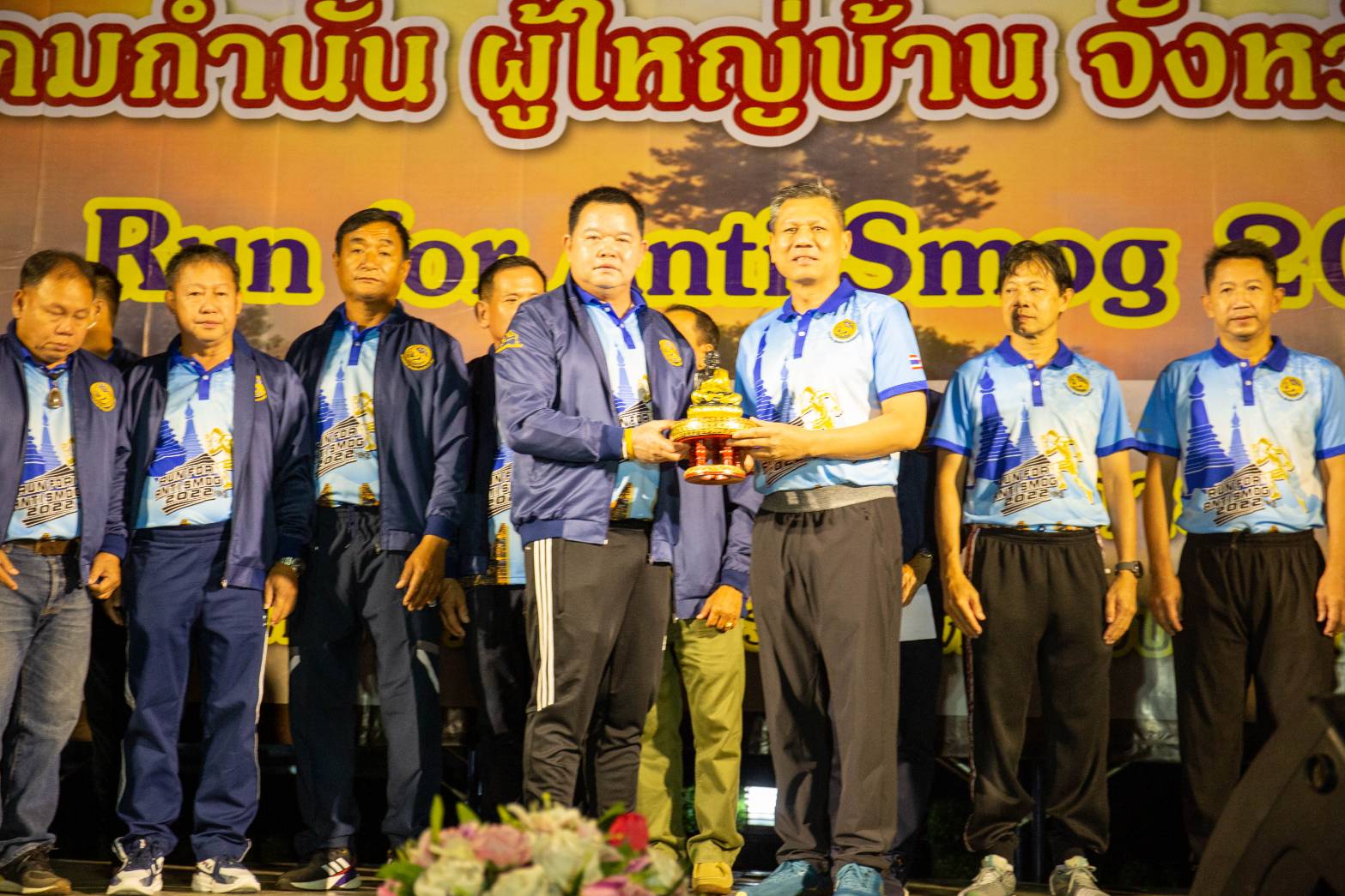 นายนิรัตน์ พงษ์สิทธิถาวร ผู้ว่าราชการจังหวัดเชียงใหม่ ประธานในพิธี กล่าวให้โอวาทนักกีฬา และกล่าวเปิด การแข่งขัน มินิมาราธอน รณรงค์ป้องกัน ปัญหาหมอกควันและไฟป่า สมาคมกำนัน ผู้ใหญ่บ้าน จังหวัดเชียงใหม่ 2565 ครั้งที่ 2 (นายอุ่นเรือน คำภิโล นายกสมาคมกำนัน ผู้ใหญ่บ้านฯ มอบของที่ระลึกให้แก่