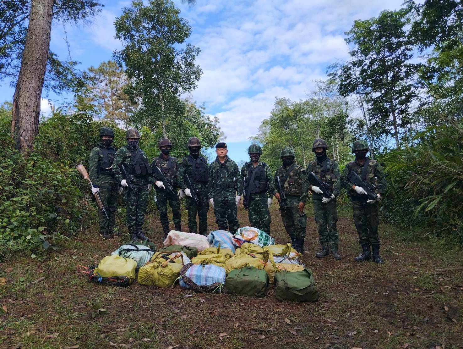 เมื่อสิ้นเสียงปืนเจ้าหน้าที่ทุกนายปลอดภัยส่วนฝ่ายตรงกันข้ามอาศัยความชำนาญในภูมิประเทศหลบหนีไปได้ เจ้าหน้าที่จึงเข้าตรวจสอบพื้นที่เบื้องต้นพบกระสอบฟางที่ดัดแปลงเป็นกระเป๋าเป้ตกกระจัดกระจายอยู่จำนวน 16 ใบ จากการตรวจสอบภายในกระสอบฟางพบห่อใบชาสีเขียวอยู่และภายในห่อใบชาก็พบว่าบรรจุยาเสพติดประเภทยาไอซ์ชนิดเกล็ดสีขาวอยู่เต็ม เจ้าหน้าที่จึงได้ตรวจยึดเอาไว้และประสานหน่วยงานที่เกี่ยวข้องเข้าไปตรวจสอบเพื่อขยายผลไปถึงกลุ่มขบวนการต่อไป