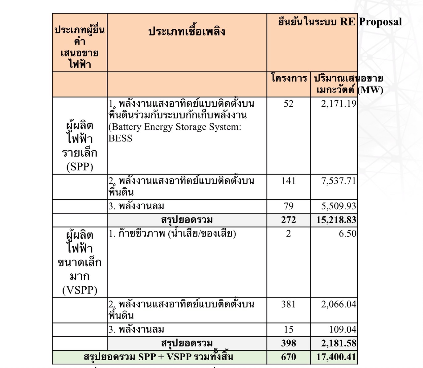 “กกพ.” สรุปยอดผู้ยื่นข้อเสนอผ่านระบบ RE Proposal กว่า 17,000 เมกะวัตต์