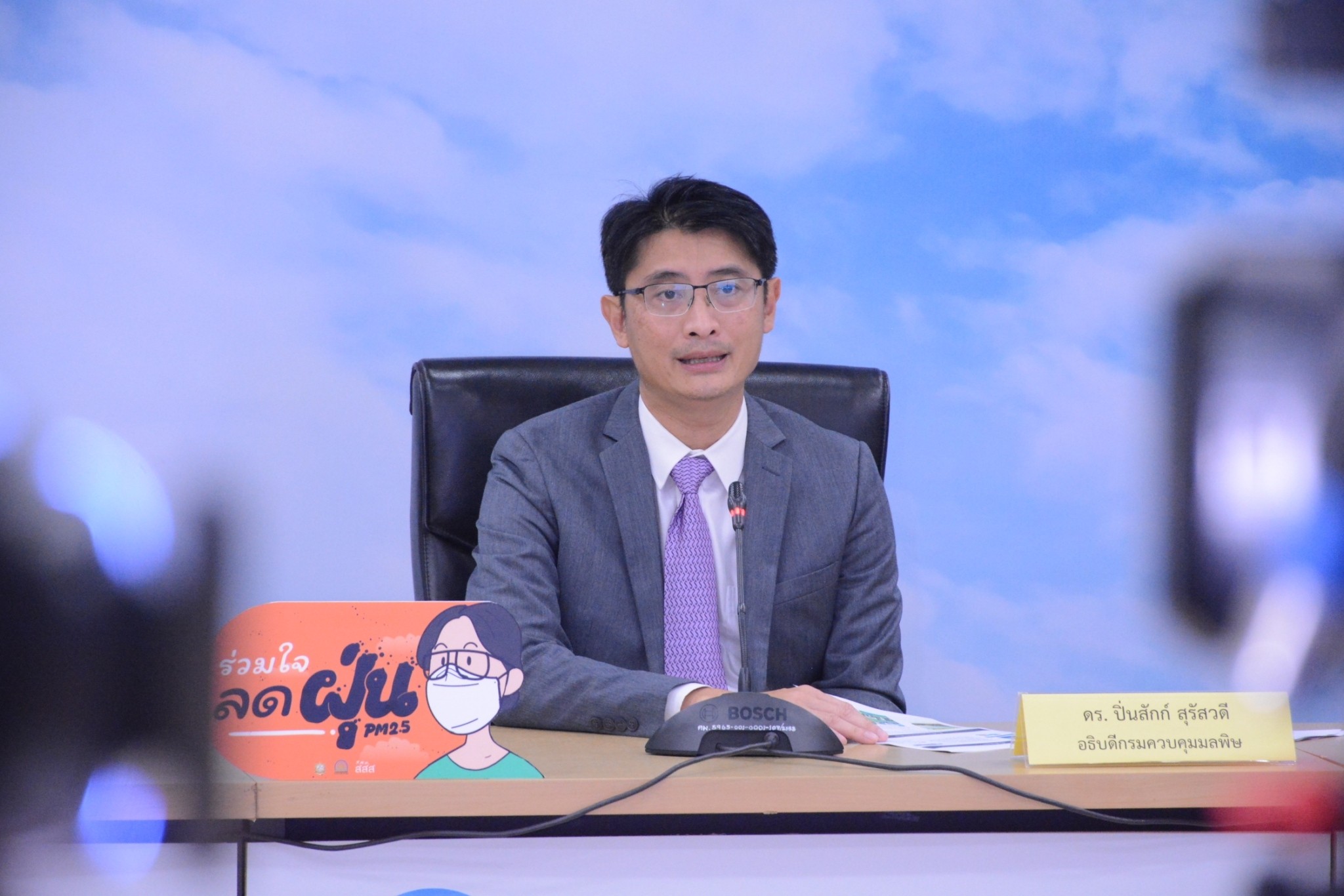 นายปิ่นสักก์ สุรัสวดี อธิบดีกรมควบคุมมลพิษ และผู้อำนวยการศูนย์แก้ไขปัญหามลพิษทางอากาศ (ศกพ.) แถลงข่าวการเตรียมพร้อมป้องกันและแก้ปัญหาฝุ่น PM2.5 ประจำปี 2566 โดยกล่าวว่า สถานการณ์ฝุ่นละออง PM2.5 มักเกิดขึ้นในช่วงปลายปีและต้นปี ซึ่งมาจากแหล่งกำเนิดที่แตกต่างกันในแต่ละพื้นที่ โดยฝุ่นละออง PM2.5 เกิดขึ้นต่อเนื่องตลอดทั้งปีแต่เนื่องจากสภาพอากาศในช่วงปลายปีและต้นปีที่มีความกดอากาศสูงจากประเทศจีนแผ่ลงมาปกคลุมประเทศไทย ทำให้ฝุ่นละออง PM2.5 เกิดการสะสม