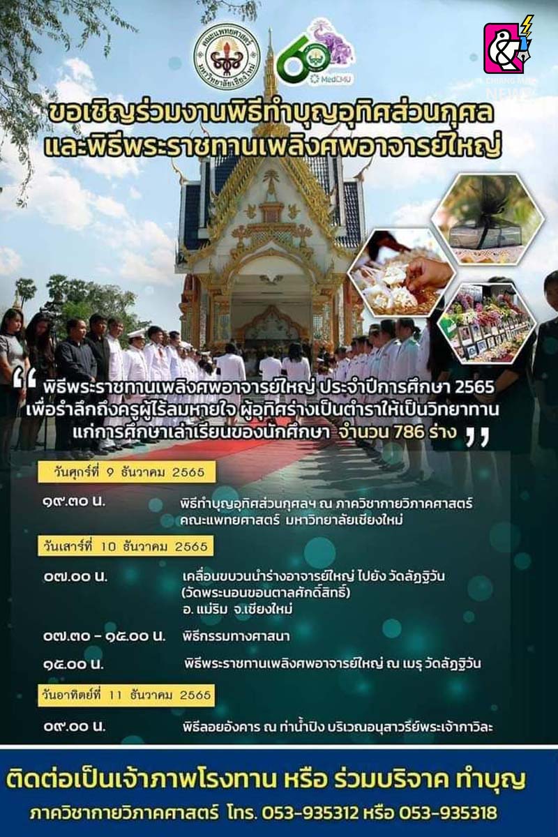 19.30 น. : พิธีทำบุญอุทิศส่วนกุศลฯ ณ ภาควิชากายวิภาคศาสตร์