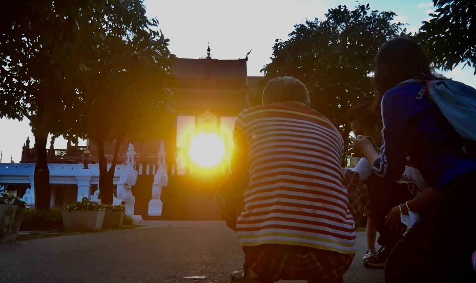 โดยพระอาทิตย์จะค่อยๆ เคลื่อนลงมาที่ตรงประตูของหอคำหลวง พร้อมสาดแสงเป็นลำแสงผ่านช่องประตูทั้ง 2 บาน อย่างสวยงาม สร้างความประทับใจให้กับนักท่องเที่ยว ที่ได้มาบันทึกภาพปรากฏการณ์ทางธรรมชาติในครั้งนี้เป็นอย่างมาก