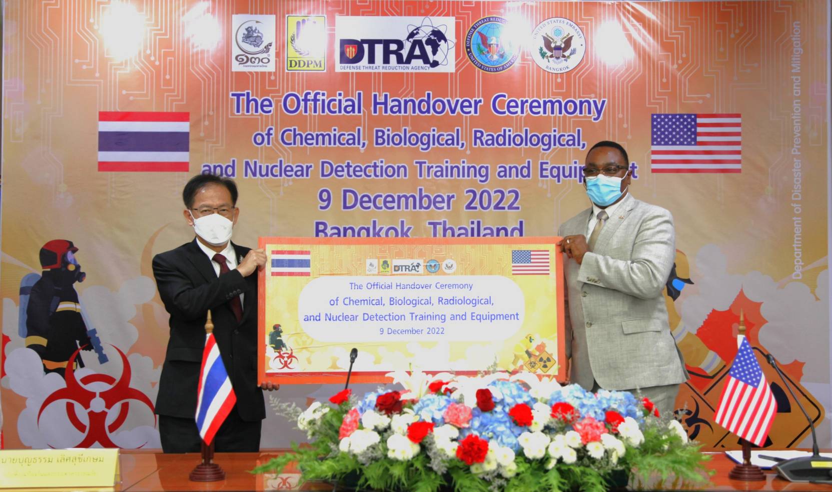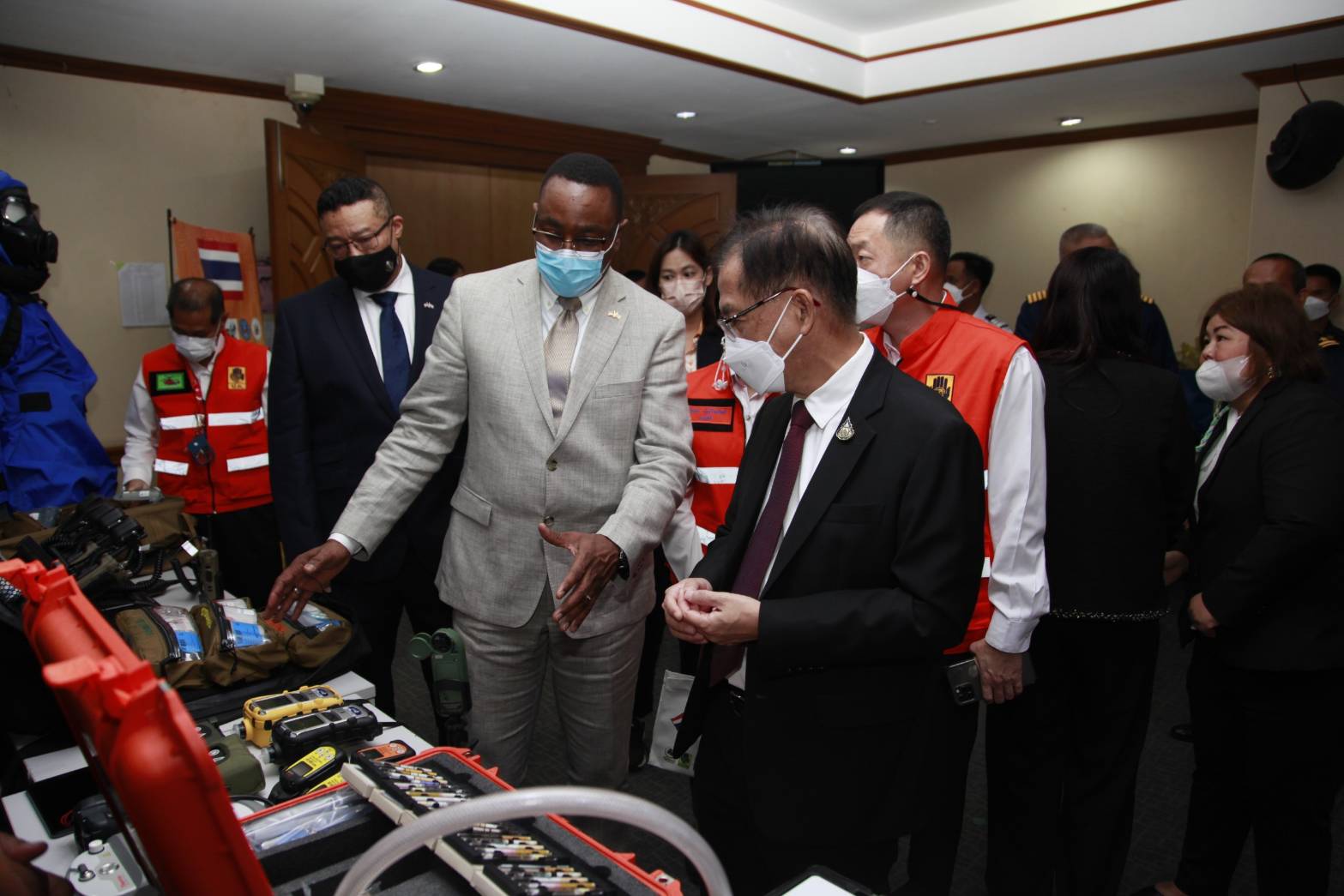 และในวันนี้ นับเป็นอีกหนึ่งการแสดงเจตจำนงในการสนับสนุนภารกิจด้านการบริหารจัดการตอบโต้เหตุฉุกเฉินในประเทศไทย ภายใต้โครงการความร่วมมือด้านการจัดการภัยพิบัติระหว่างกรมป้องกันและบรรเทาสาธารณภัยและสหรัฐอเมริกาที่ได้ส่งมอบอุปกรณ์เครื่องมือตอบโต้ต่อสารเคมี ชีวภาพ รังสี หรืออาวุธนิวเคลียร์ และอาวุธเคมีที่มีอานุภาพทำลายล้างสูงกว่า 200 รายการ คิดเป็นมูลค่า 2.1 ล้านดอลลาร์สหรัฐหรือ 74 ล้านบาท ให้แก่กรมป้องกันและบรรเทาสาธารณภัย เพื่อนำไปใช้ประโยชน์ในการจัดฝึกอบรม ถ่ายทอดองค์ความรู้ แก่ภาคีเครือข่ายผู้ปฏิบัติงานกู้ภัยทั่วประเทศ
