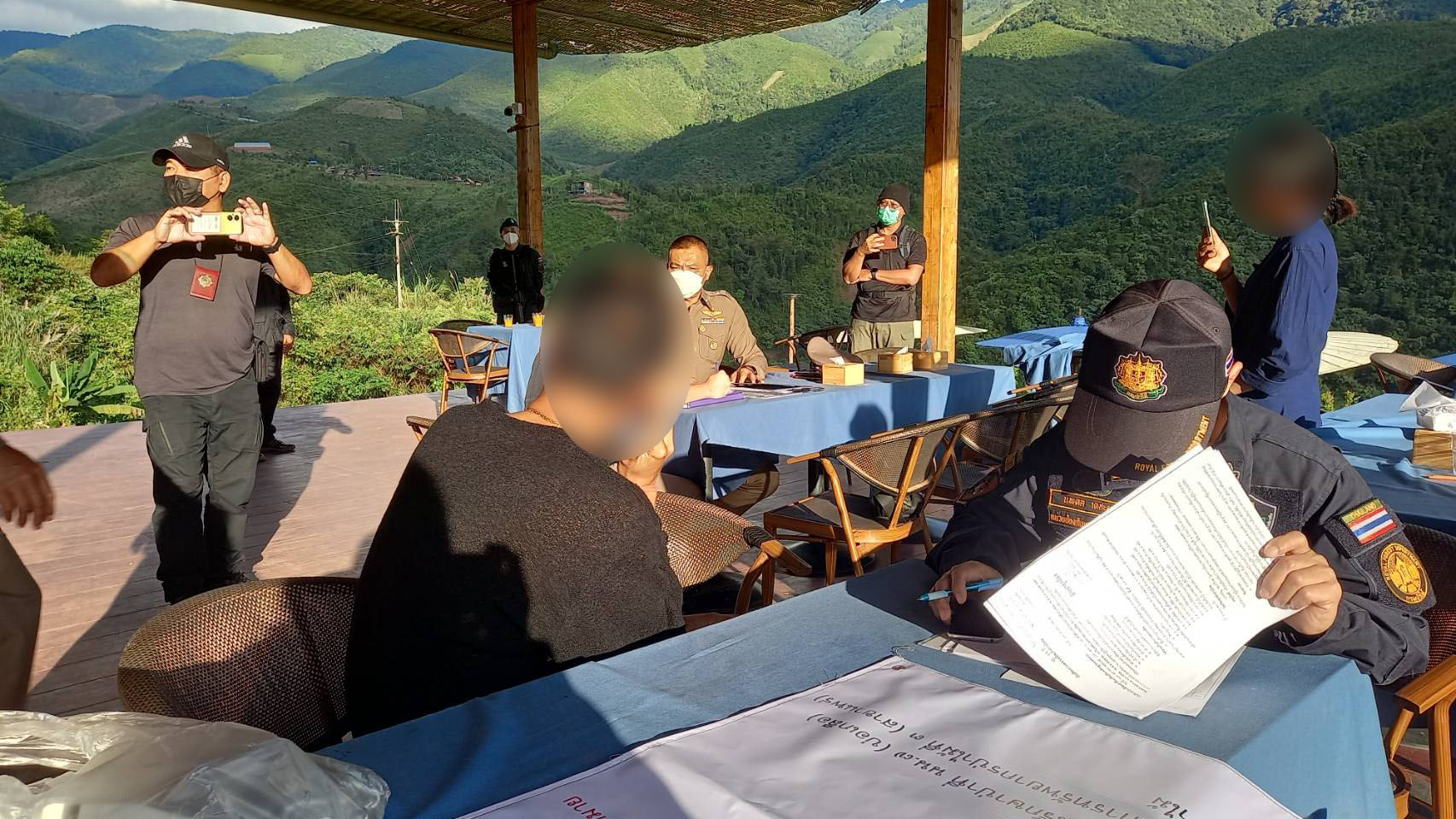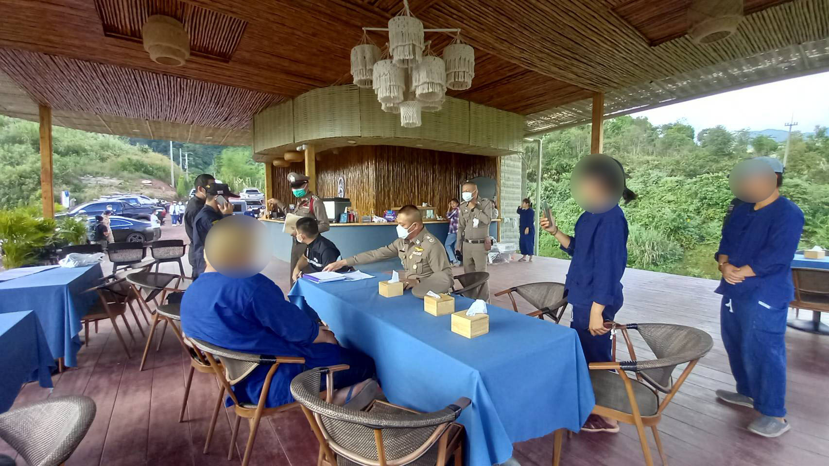 โดยในระหว่างที่ตรวจยึดจับกุม ขณะเข้าตรวจค้นบรรยากาศเป็นไปอย่างตึงเครียด เนื่องจากผู้ประกอบการไม่ให้ความร่วมมือกับเจ้าหน้าที่ อีกทั้งยังกดดันเจ้าหน้าที่ด้วยการใช้มือถืออัดบันทึกทั้งภาพและเสียงตลอดเวลา และปฏิเสธทุกข้อกล่าวหาโดยอ้างรอผู้ใหญ่กับทางทนายความ อีกทั้งในระหว่างตรวจค้น ได้มีนักท่องเที่ยวที่จองห้องพักออนไลน์ไว้เดินทางเข้าพักอีกด้วย ซึ่งเจ้าหน้าที่ได้ใช้เวลากว่า 2 ชั่วโมง ร.ต.อ. ธนิต ธิมิตร พนักงานสอบสวน สภ.บ่อเกลือ จึงได้ควบคุมตัวผู้ต้องหา 4 ราย พร้อมตรวจยึดของกลางรวม 11 รายการ ตั้งข้อกล่าวหาว่าร่วมกันฝ่าฝืนคำสั่งเจ้าพนักงาน ที่ห้ามเข้าพื้นที่ที่ทำการตรวจยึดในของกลางคดีบุกรุกพื้นที่ป่าสงวนแห่งชาติ พรบ.ป่าสงวนแห่งชาติ พ.ศ.2507 ประกอบกิจการโรงแรมโดยไม่มีใบอนุญาต นำตัวส่งพนักงานสอบสวนสถานีตำรวจภูธรบ่อเกลือเพื่อดำเนินการตามกฎหมายต่อไป