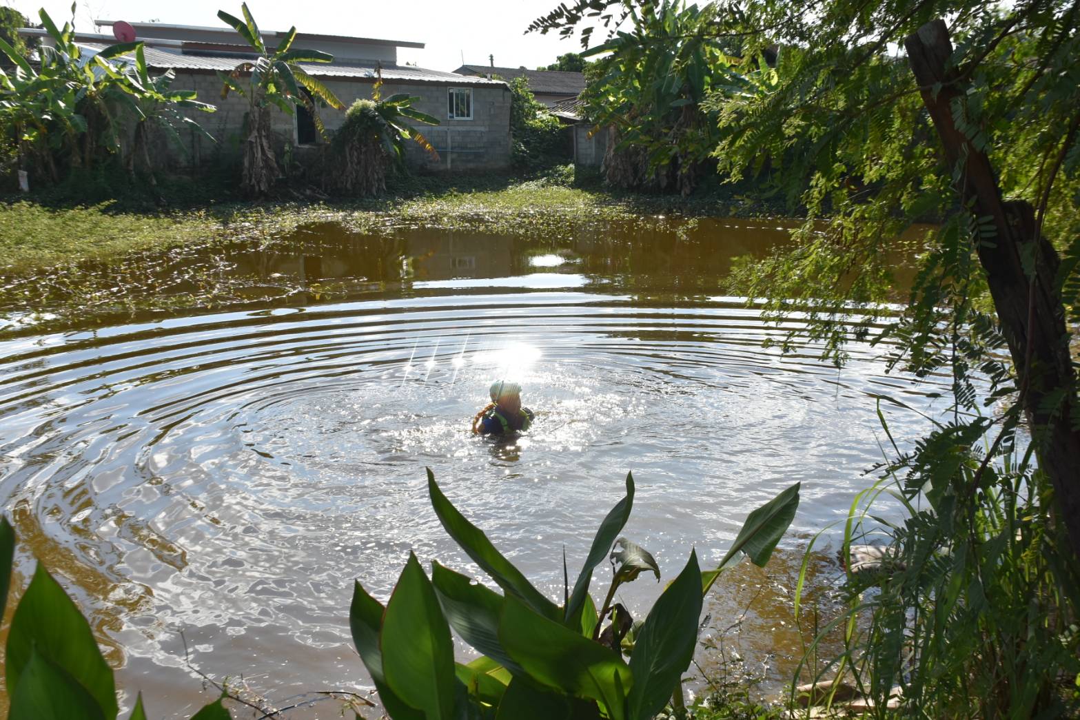 เมื่อไปถึงที่เกิดเหตุ พบว่าเป็นสระน้ำสาธารณะกลางหมู่บ้าน ขนาดประมาณ 20×20 ม. น้ำลึกประมาณ 5 ม. ซึ่งสระน้ำดังกล่าวอยู่ข้างบ้านของผู้สูญหาย ทราบชื่อภายหลังคือ นายผัด อายุ 49 ปี บ้านม.2 ต.งิ้ว อ.เทิง จ.เชียงราย จากการประเมินพบว่าระดับน้ำมีความลึก จึงประสานทีมประดาน้ำ “นทีสยาม” จากมูลนิธิสยามเชียงราย จุดอำเภอเมือง มาช่วยในการค้นหา