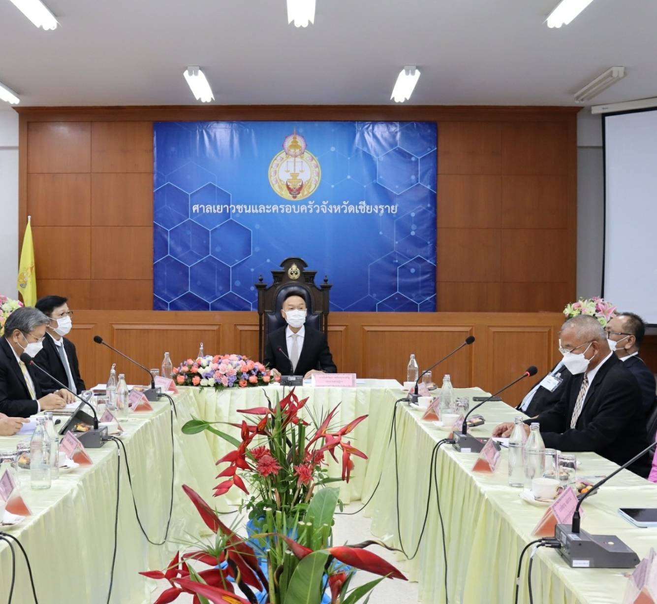 เมื่อเวลา 14.30 น. วันที่ 13 ธันวาคม 2565 นายโชติวัฒน์ เหลืองประเสริฐ ประธานศาลฎีกา พร้อมด้วยนายสืบพงษ์ ศรีพงษ์กุล ผู้พิพากษาหัวหน้าคณะในศาลฎีกา นายรุ่งศักดิ์ วงศ์กระสันต์ เลขาธิการประธานศาลฎีกา นายธีรศักดิ์ เงยวิจิตร เลขาธิการสำนักงานศาลยุติธรรม นายจรัล เตชะวิจิตรา รองเลขาธิการประธานศาลฎีกา และคณะ ได้ตรวจเยี่ยมศาลเยาวชนและครอบครัวจังหวัดเชียงราย โดยมีนายปานทอง สุ่มมาตร์ อธิบดีผู้พิพากษาภาค 5 นายสุทธิศักดิ์ สุขบุญพันธ์ รองอธิบดีผู้พิพากษาภาค 5 ร่วมตรวจเยี่ยมพร้อมกับคณะ มีนายวันเดิม สู่ทรัพย์ ผู้พิพากษาหัวหน้าศาลเยาวชนและครอบครัวจังหวัดเชียงราย พร้อมคณะ ให้การต้อนรับ ประธานศาลฎีกาได้มอบนโยบายแก่คณะผู้พิพากษา ข้าราชการ เจ้าหน้าที่ ตลอดจนคณะผู้พิพากษาสมทบ ผู้ประนีประนอม พร้อมทั้งรับฟังการรายงานผลการดำเนินงาน การปฏิบัติตามนโยบายประธานศาลฎีกา และแนวทางการปรับปรุงพัฒนาของศาล