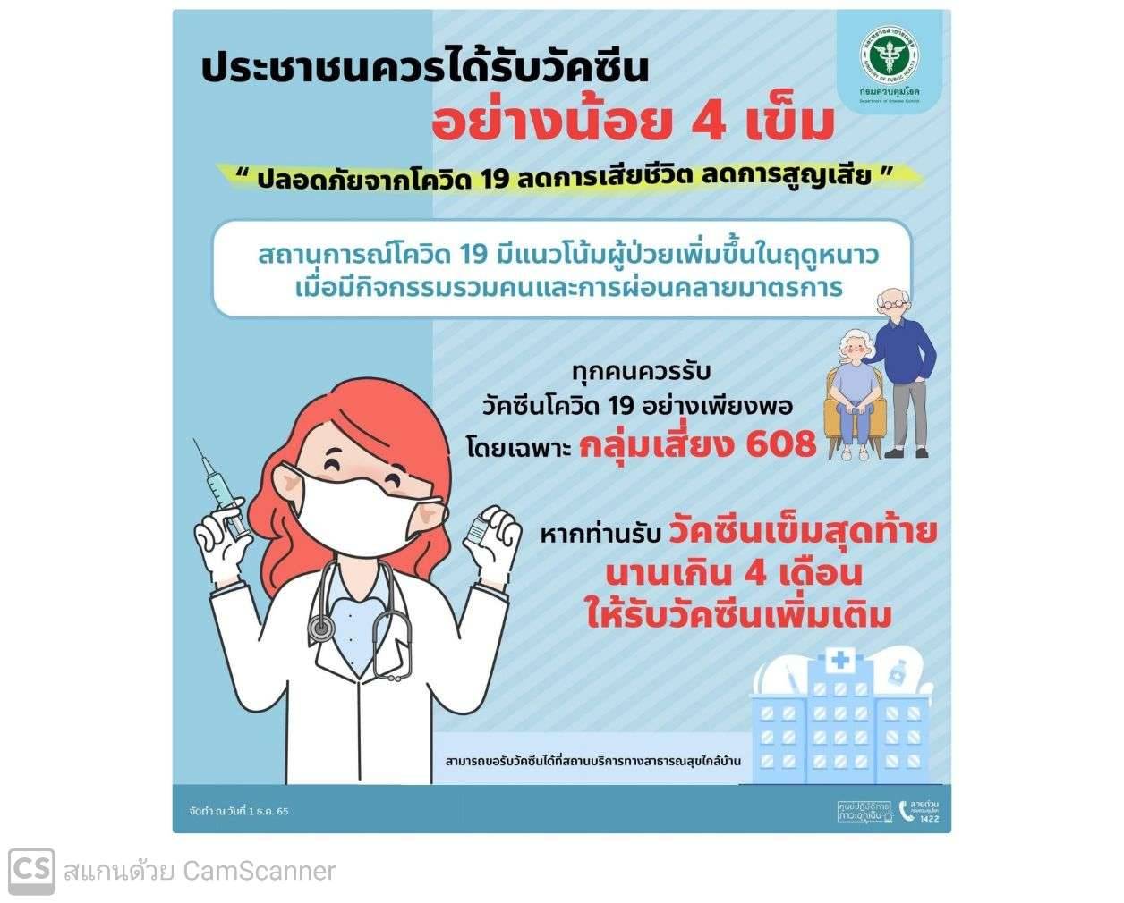 นพ.กิตติพันธุ์ แนะนำและเชิญชวนให้ประชาชนชาวเชียงใหม่ เร่งเข้ารับวัคซีนเข็มกระตุ้น โดยเฉพาะกลุ่ม 608 ให้เข้ารับการฉีดวัคซีนอย่างน้อย 4 เข็ม เพื่อลดความรุนแรงและอัตราการเสียชีวิต และประชาชนทุกกลุ่มวัย โดยสามารถติดต่อเข้ารับบริการฉีดวัคซีนโควิด-19 ได้ที่โรงพยาบาลใกล้บ้านทุกแห่ง
