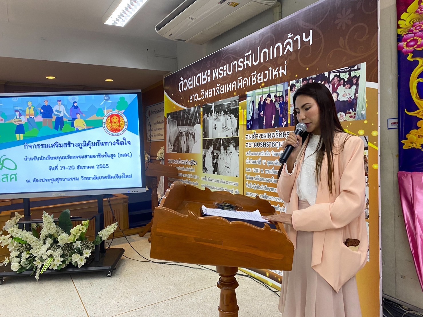 วันที่ 20 ธันวาคม 2565 นายวัชรพงศ์ ฝั้นติ๊บ ผู้อำนวยการ วิทยาลัยเทคนิคเชียงใหม่ ประธานกรรมการอาชีวศึกษาจังหวัดเชียงใหม่ มอบหมายให้ นายบุญรัตน์ สว่างแจ้ง รองผู้อำนวยการฝ่ายพัฒนากิจการนักเรียน นักศึกษา เป็นประธานในพิธีเปิดกิจกรรมเสริมสร้างภูมิคุ้มกันทางจิตใจ และโครงการเรียนรู้ในสภาวะสังคมเมือง(สภาวะโควิด-19) สำหรับนักเรียนทุนนวัตกรรมสายอาชีพชั้นสูง (กสศ.) วิทยาลัยเทคนิคเชียงใหม่ ปีงบประมาณ 2565 ได้รับความอนุเคราะห์วิทยากรจาก นายรณสิงห์ รือเรือง นักจิตวิทยาคลินิกชำนาญการพิเศษ มีนักเรียนทุนนวัตกรรมสายอาชีพชั้นสูง (กสศ.) รุ่นที่ 2 ประเภททุน 5 ปี จำนวน 36 คน และรุ่นที่ 3 ประเภททุน 5 ปี จำนวน 35 คน รวมทั้งหมด 71 คน ณ ห้องประชุมสุธาธรรม วิทยาลัยเทคนิคเชียงใหม่