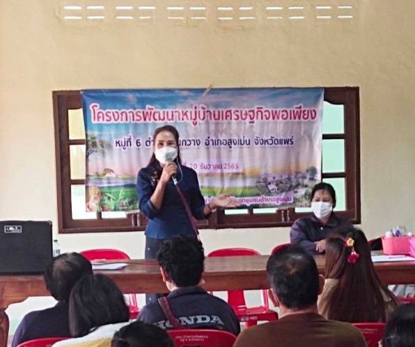 เมื่อวันอังคารที่ 20 ธันวาคม 2565 เวลา 09.00 น. ณ ศาลาประชาคม หมู่ที่ 6 ตำบลบ้านกวาง อำเภอสูงเม่น จังหวัดแพร่ นางผุสดี ดวงเนตร พัฒนาการอำเภอสูงเม่น มอบหมายให้ นางอดิศร พรหมอยู่ นักวิชาการพัฒนาชุมชนชำนาญการ พร้อมด้วยทีมงานสำนักงานฯ ดำเนินการจัดเวทีสัมมนาการเรียนรู้วิถีชีวิตเศรษฐกิจพอเพียง หมู่ที่ 6 ตำบลบ้านกวาง เพื่อส่งเสริมและสนับสนุนการมีส่วนร่วมในการพัฒนาตนเอง และชุมชนอย่างมีทิศทางที่สอดคล้องตามหลักปรัชญาของเศรษฐกิจพอเพียง ศักยภาพและบริบทของชุมชน โดยมีกลุ่มเป้าหมายจำนวน 30 ครัวเรือน