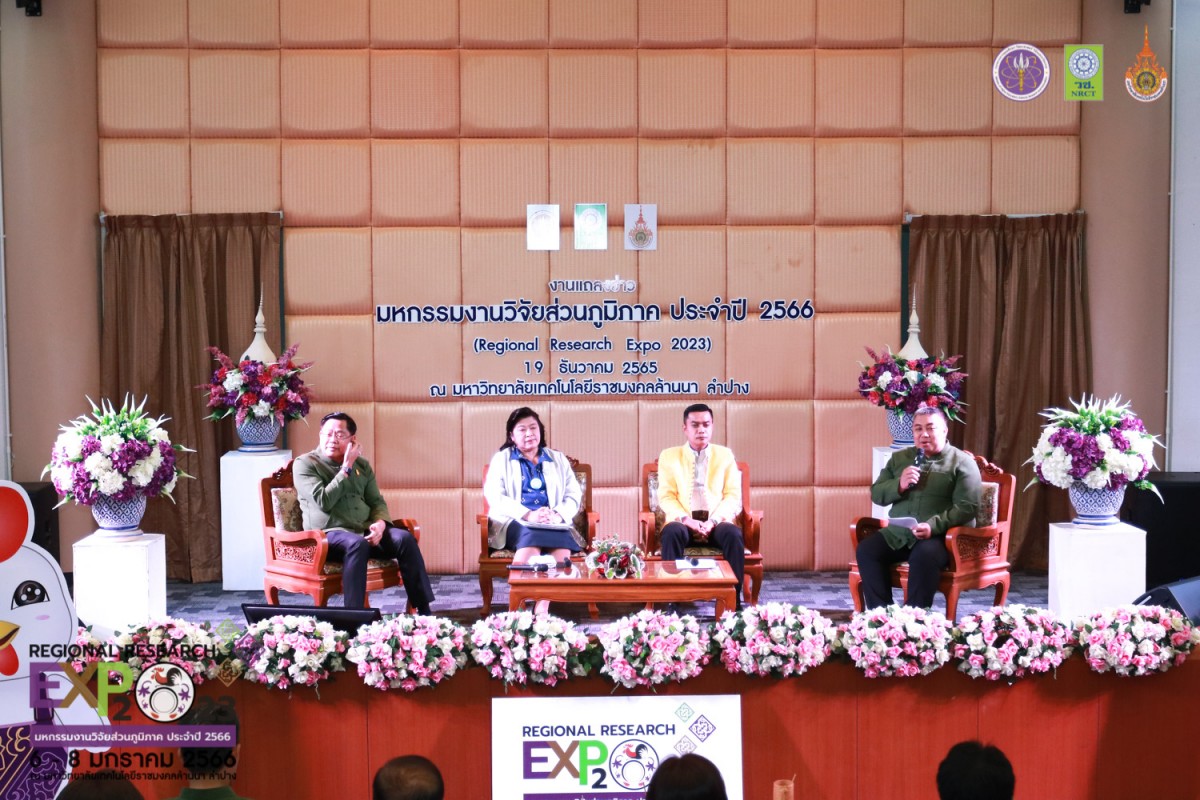 สำหรับมหกรรมงานวิจัยส่วนภูมิภาค ประจำปี 2566 (Regional Research Expo 2023)”ภายใต้แนวคิด “การพัฒนาภูมิภาคอย่างยั่งยืนด้วยงานวิจัย นวัตกรรม ภูมิปัญญาล้านนาและโมเดลเศรษฐกิจใหม่ BCG” จะจัดขึ้นระหว่างวันที่ 6-8 มกราคม 2566 ณ มหาวิทยาลัยเทคโนโลยีราชมงคลล้านนา ลำปาง ภายในงานพบกับนิทรรศการ และกิจกรรมที่น่าสนใจ อาทิ นิทรรศการโครงการเฉลิมพระเกียรติพระบาทสมเด็จพระเจ้าอยู่หัว, นิทรรศการการวิจัยของหน่วยงาน/นักวิจัยในพื้นที่/เครือข่ายการวิจัยในภูมิภาค, นิทรรศการอุทยานวิทยาศาสตร์ภาคเหนือ, พื้นที่ให้คำปรึกษาความรู้จากงานวิจัย ตลาดนัดผลงานวิจัยที่ได้รับการจดทะเบียนทรัพย์สินทางปัญญา, การประกวดนวัตกรรม ผลงานสร้างสรรค์ ในประเด็นการพัฒนาเศรษฐกิจสร้างสรรค์ การท่องเที่ยวและภูมิปัญญาล้านนา ภายใต้โมเดลเศรษฐกิจใหม่ BCG, การนำเสนอผลงานวิจัย “การพัฒนาภูมิภาคอย่างยั่งยืนด้วยงานวิจัย นวัตกรรม ภูมิปัญญาล้านนาและโมเดลเศรษฐกิจใหม่ BCG” 6 กลุ่มเรื่อง, เทคโนโลยีนวัตกรรม ด้านสุขภาพและวิทยาศาสตร์การแพทย์, เทคโนโลยีนวัตกรรม ด้านการเกษตรและอาหาร, เทคโนโลยีนวัตกรรม ด้านพลังงาน วัสดุ และสิ่งแวดล้อม, ยกระดับการท่องเที่ยว เศรษฐกิจสร้างสรรค์และภูมิปัญญาล้านนา, งานวิจัยนวัตกรรมชุมชน งานวิจัยรับใช้สังคม และการอนุรักษ์ทรัพยากรไทย เพื่อการขับเคลื่อนเศรษฐกิจ ตลาดนัด U2T for BCG ตลาดนัดคลินิกเทคโนโลยี และสินค้าโอทอป
