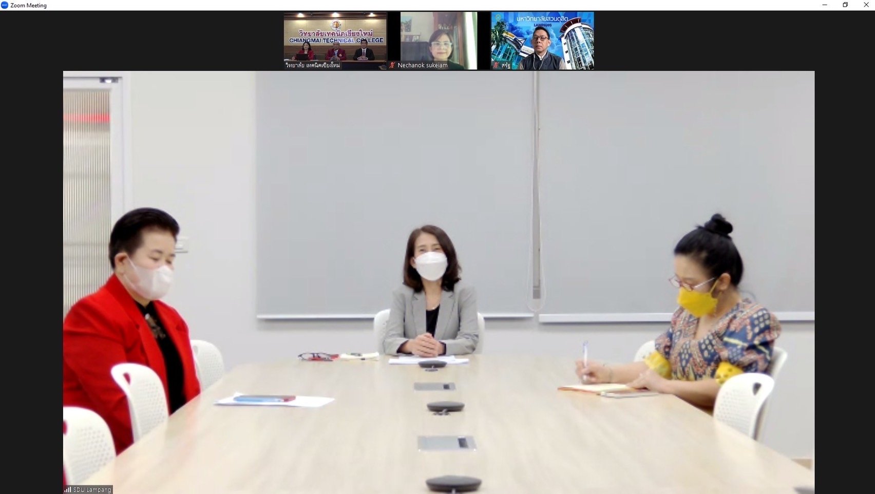 วันที่ 23 ธันวาคม 2565 ท่านผู้อำนวยการ วัชรพงศ์ ฝั้นติ๊บ ผู้อำนวยการวิทยาลัยเทคนิคเชียงใหม่ ประธานกรรมการอาชีวศึกษาจังหวัดเชียงใหม่ พร้อมนายชรันต์ยุทธ์ บุญยง รองผู้อำนวยการฝ่ายวิชาการและ นางสาวชนนิกานต์ จริตงาม ครูแผนกวิชาธุรกิจการบิน เข้าร่วมพูดคุย ปรึกษาหารือ กับ มหาวิทยาลัยสวนดุสิต วิทยาเขตลำปาง สาขาธุรกิจการบิน เพื่อหาข้อตกลงความร่วมมือ (MOU) ระหว่างวิทยาลัยเทคนิคเชียงใหม่ แผนกวิชาธุรกิจการบิน กับมหาวิทยาลัยสวนดุสิต วิทยาเขตลำปาง สาขาธุรกิจการบิน ในการเทียบโอนหลักสูตร และรายวิชา เพื่อให้นักศึกษาที่จบการศึกษาในระดับประกาศนียบัตรวิชาชีพชั้นสูงได้เข้าศึกษาต่อในระดับปริญญาตรีที่มหาวิทยาลัยสวนดุสิต วิทยาเขตลำปาง สาขาธุรกิจการบิน ได้ ผ่านโปรแกรมออนไลน์ Zoom ณ ห้อง ประชุมสุทธาสิริ วิทยาลัยเทคนิคเชียงใหม่
