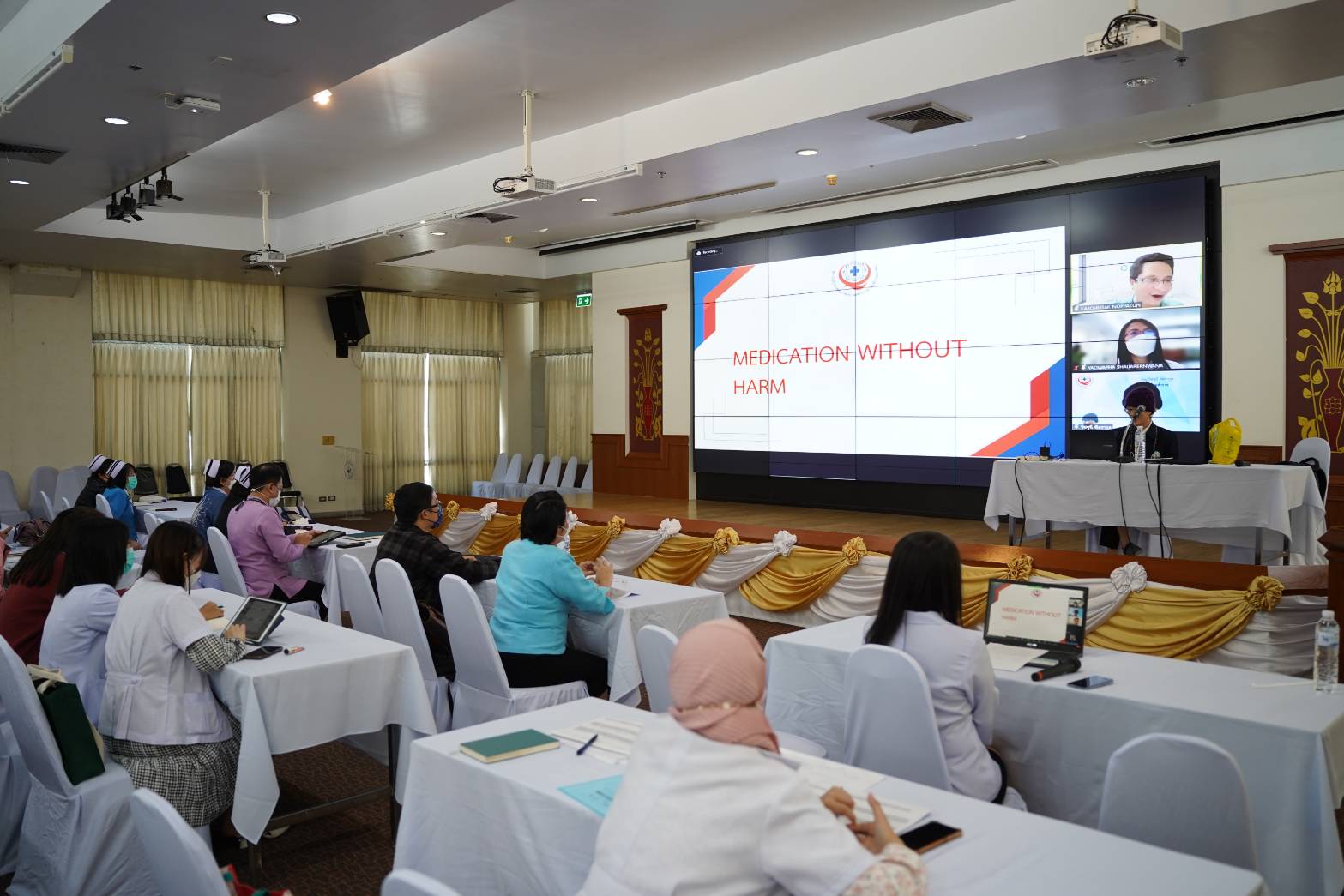 รศ.นพ.ขจรศักดิ์ นพคุณ รองผู้อำนวยการ โรงพยาบาลมหาราชนครเชียงใหม่ เป็นประธานในพิธีเปิดกิจกรรม Suandok Medication safety ครั้งที่ 7 จัดโดยคณะอนุกรรมการพัฒนาระบบยา โรงพยาบาลมหาราชนครเชียงใหม่ ให้แก่บุคลากรทางการแพทย์ โดยมี ภญ.วิชชุนี พิตรากูล ที่ปรึกษาด้านพัฒนาระบบยา เป็นวิทยากรบรรยายหัวข้อเรื่อง “Medication without harm ” เมื่อวันที่ 23 ธันวาคม ณ ห้องประชุม ชั้น 15 อาคารเฉลิมพระบารมี คณะแพทยศาสตร์ มช.