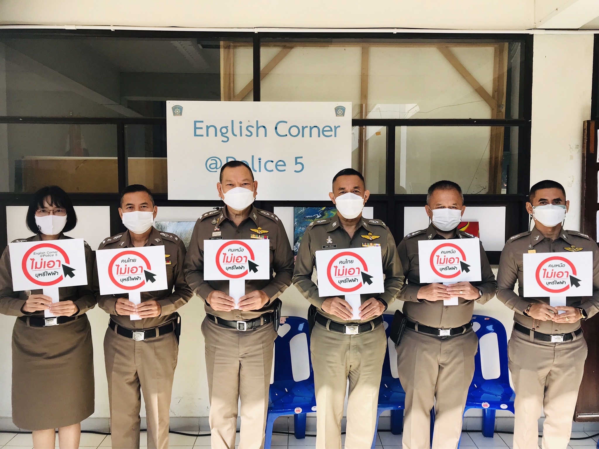 และร่วมกันรณรงค์ด้วยการถือป้าย “English Corner @Police 5 ไม่เอาบุหรี่ไฟฟ้า” และข้าราชการตำรวจในสังกัดตำรวจภูธรภาค 5 ได้ร่วมรณรงค์ “คนไทยไม่เอาบุหรี่ไฟฟ้า” และ”คนเหนือไม่เอาบุหรี่ไฟฟ้า” หลังจากนั้นได้เชิญชวนให้ข้าราชการตำรวจ ในสังกัด บก.อก.ภ.5 , บก.สส.ภ.5 และ บก.กค.ภ.5 จำนวนกว่า 70 คน เข้าร่วมกิจกรรม โดยในห้องชมรม English Corner @Police 5 ได้ตกแต่งในธีม Christmas 2022 โดยจัดมุม Christmas ของแต่ละประเทศ รวม 5 ประเทศ ได้แก่ แคนาดา ,อังกฤษ, สหรัฐอเมริกา, ออสเตรเลีย และเกาหลีใต้ โดยจิตอาสาชาวต่างชาติทั้ง 5 ประเทศ ได้นำอาหาร ขนม และเครื่องดื่ม ของแต่ละประเทศ ตลอดจนการเล่นเกมส์ชิงของขวัญรางวัล พร้อมทั้งบอกเล่าให้ข้าราชการตำรวจผู้เข้าร่วมกิจกรรม ได้ทราบถึงประเพณีการจัดงาน Christmas ของแต่ละประเทศ