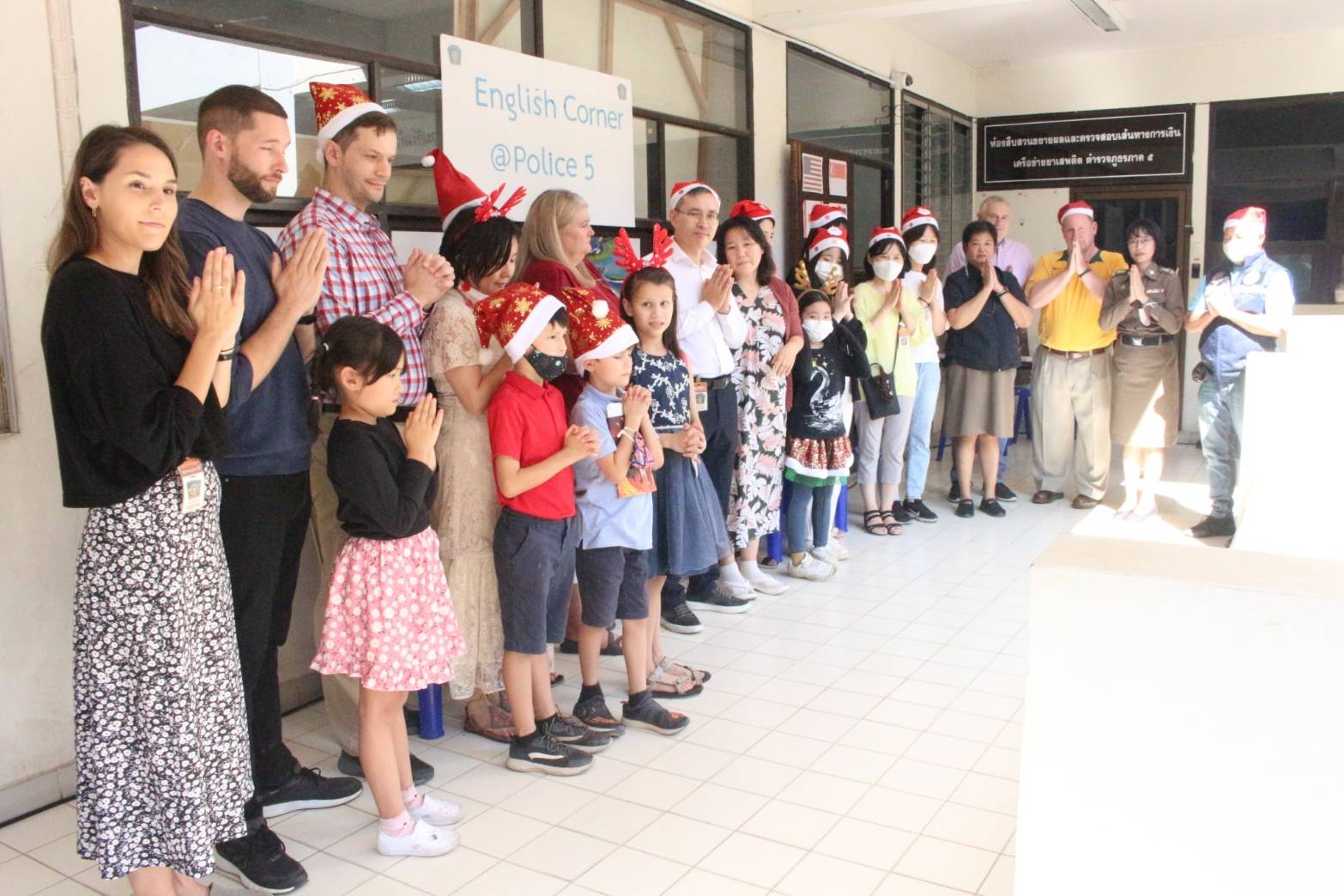 วันพุธที่ 21 ธันวาคม 2565 เวลา 11.30 – 13.00 น. ชมรม English Corner@Police 5 จัดกิจกรรม 5 Countries 5 Corners for Christmas 2022 โดยก่อนเริ่มกิจกรรมสมาชิกของชมรมฯ ซึ่งประกอบด้วยข้าราชการตำรวจ และอาสาสมัครชาวต่างชาติ ได้ร่วมกันตั้งจิตอธิษฐานถวายพระพรชัยมงคลแด่ สมเด็จพระเจ้าลูกเธอเจ้าฟ้าพัชรกิติยาภา นเรนทิราเทพยวดี กรมหลวงราชสาริณีสิริพัชร มหาวัชรราชธิดา ให้ทรงหายจากพระอาการประชวรและขอให้ทรงมีพลานามัยแข็งแรงโดยเร็ววัน