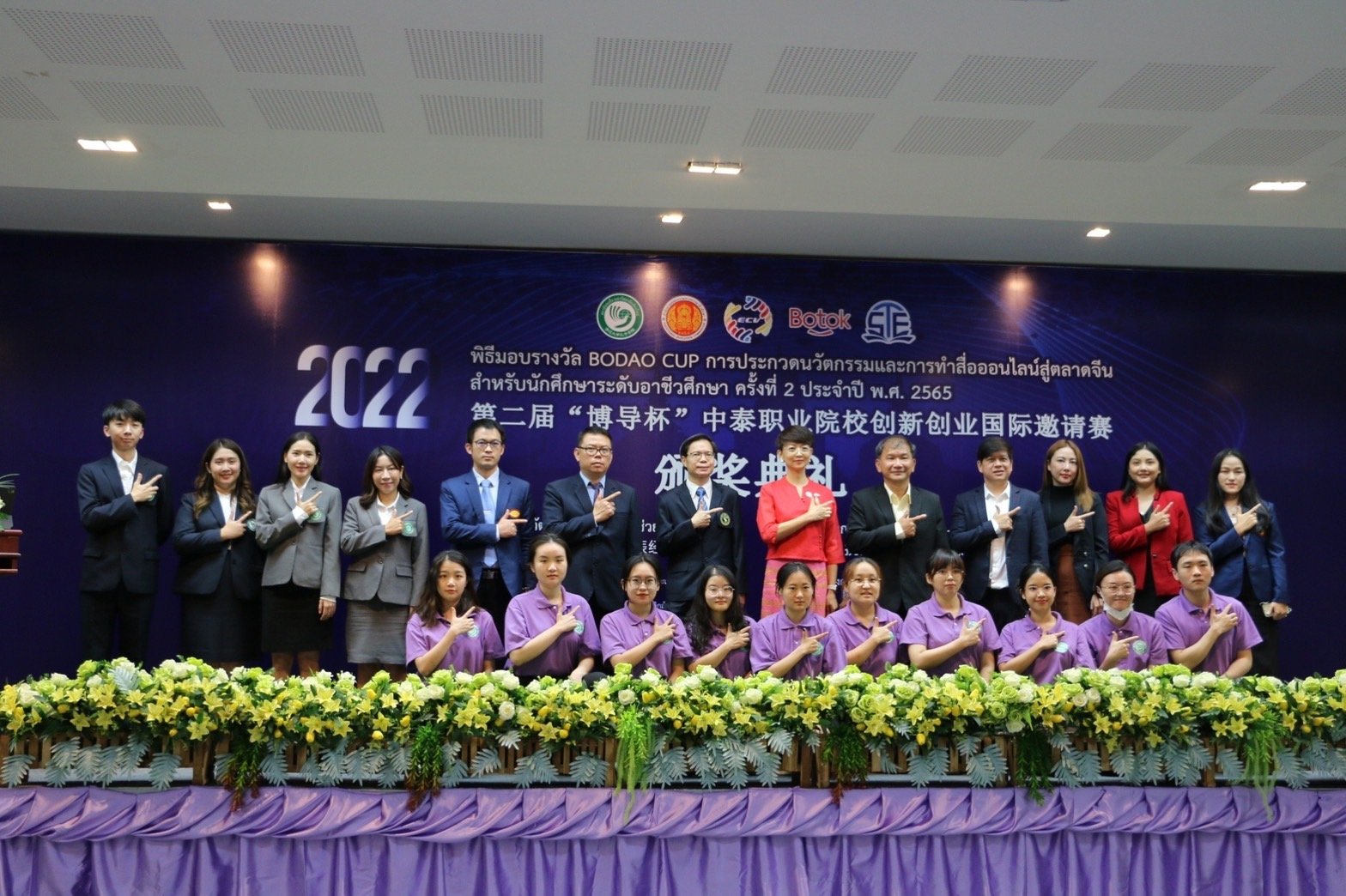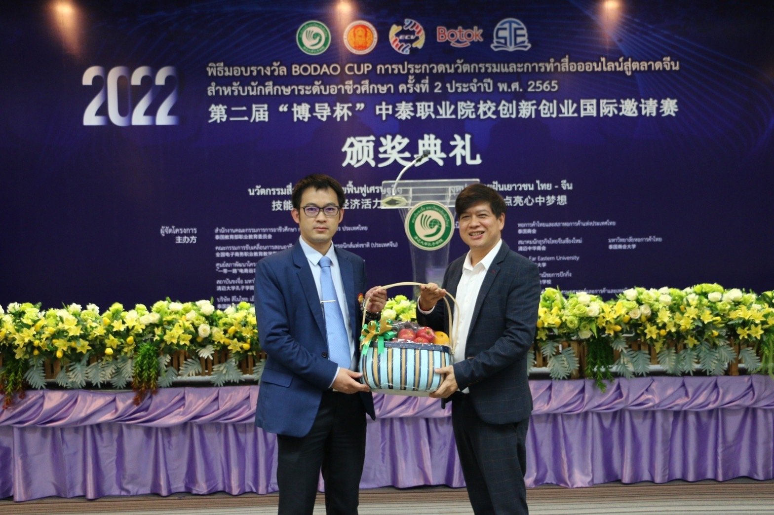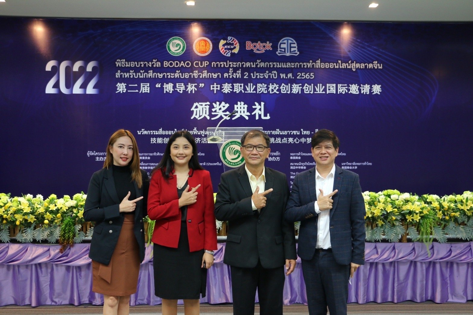 วันที่ 23 ธันวาคม 2565 นายวัชรพงศ์ ฝั้นติ๊บ ผู้อำนวยการ วิทยาลัยเทคนิคเชียงใหม่ ประธานกรรมการอาชีวศึกษาจังหวัดเชียงใหม่ มอบหมายให้ นายสมชาย เอื้องไมตรีภิรมย์ รองผู้อำนวยฝ่ายแผนและความร่วมมือ พร้อมด้วย น.ส.ปรียานุช คำเย็น หัวหน้างานแนะแนวและจัดหางาน น.ส.ชนนิกานต์ จริตงาม หัวหน้างานประชาสัมพันธ์ และ นายอดิเรก นวลศรี ครูผู้ควบคุมทีม ขึ้นกล่าวสนับสนุนและเข้าร่วมงานกิจกรรม BODAO CUP การประกวดนวัตกรรมและการทำสื่อออนไลน์สู่ตลาดจีน สำหรับนักศึกษาระดับอาชีวศึกษา ครั้งที่ 2 ประจำปี พ.ศ. 2565 โดย วิทยาลัยเทคนิคเชียงใหม่ ได้รับรางวัลรองชนะเลิศอันดับ 1 ในการประกวดแข่งขันนวัตกรรมสื่อออนไลน์ “มูเตลูปังปัง” ณ มหาวิทยาลัยเชียงใหม่