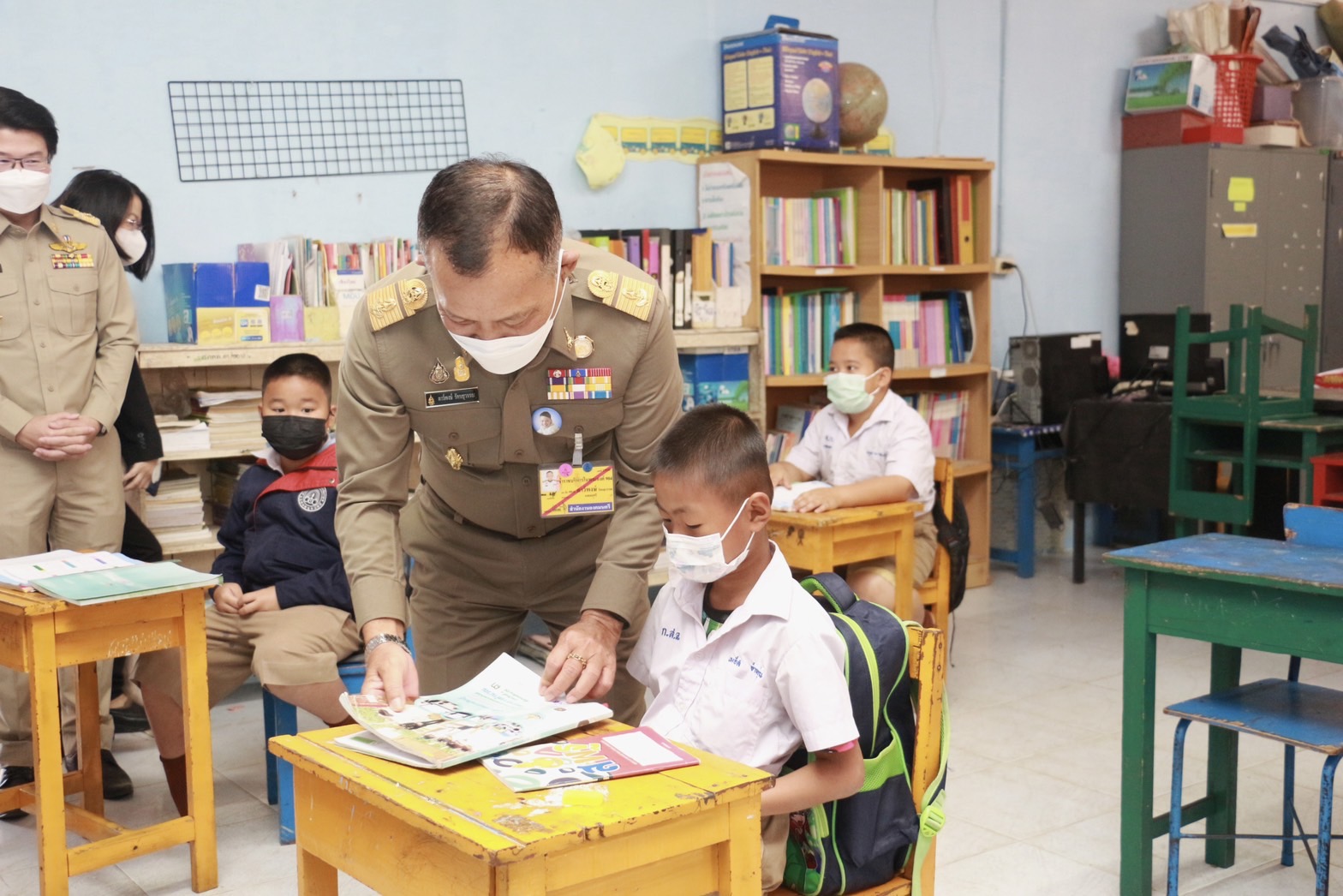 พลเอก ดาว์พงษ์ รัตนสุวรรณ องคมนตรี และคณะ ตรวจเยี่ยมโรงเรียนบ้านกอสะเลียม อำเภอสันกำแพง จังหวัดเชียงใหม่ ที่จัดการศึกษาทางไกลผ่านดาวเทียม
